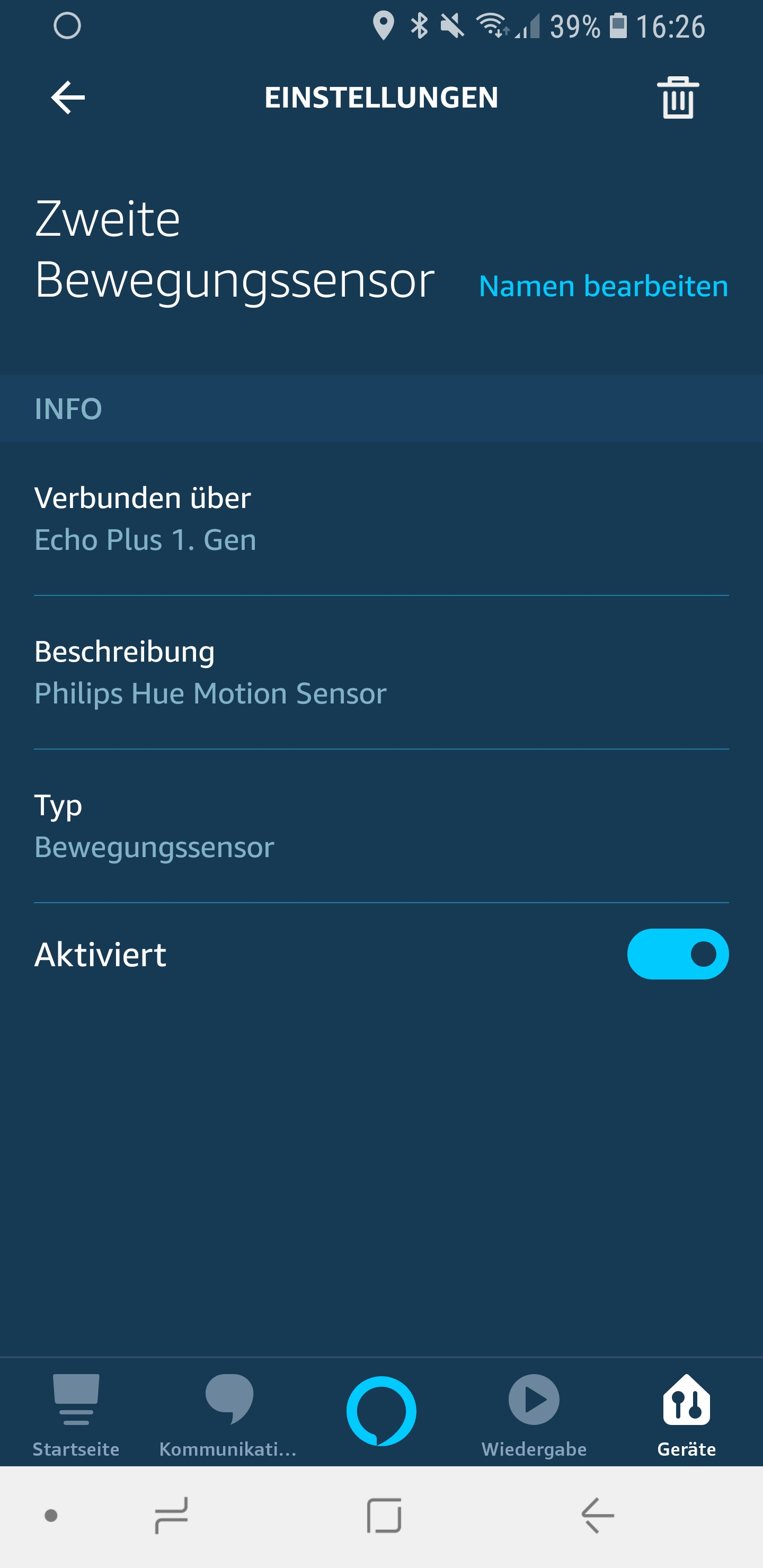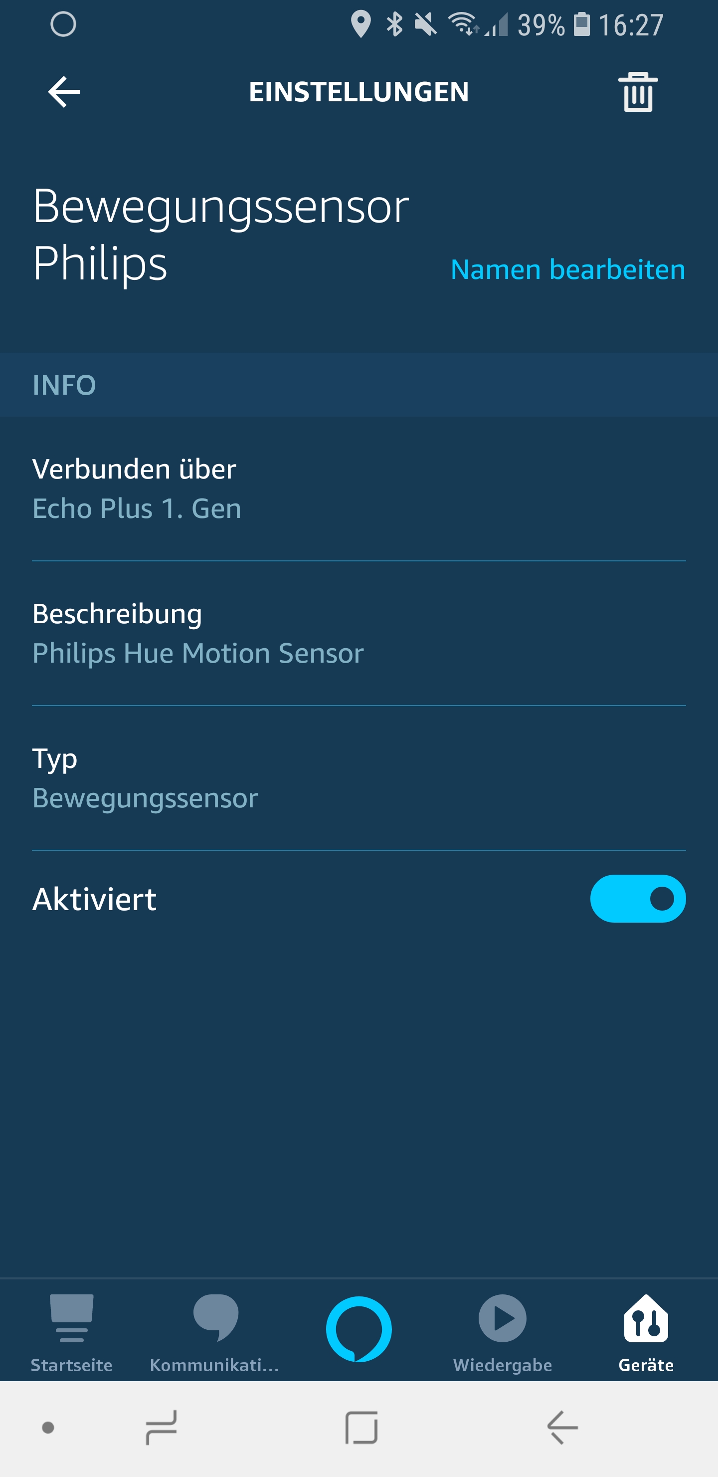 Wie ihr seht, ist die Einrichtung kinderleicht und schnell umgesetzt. Ist der Bewegungsmelder einmal eingerichtet, kann man mit ihm Routinen starten, was wohl der Hauptvorteil der direkten Verbindung mit dem Echo mit Hub sein dürfte.