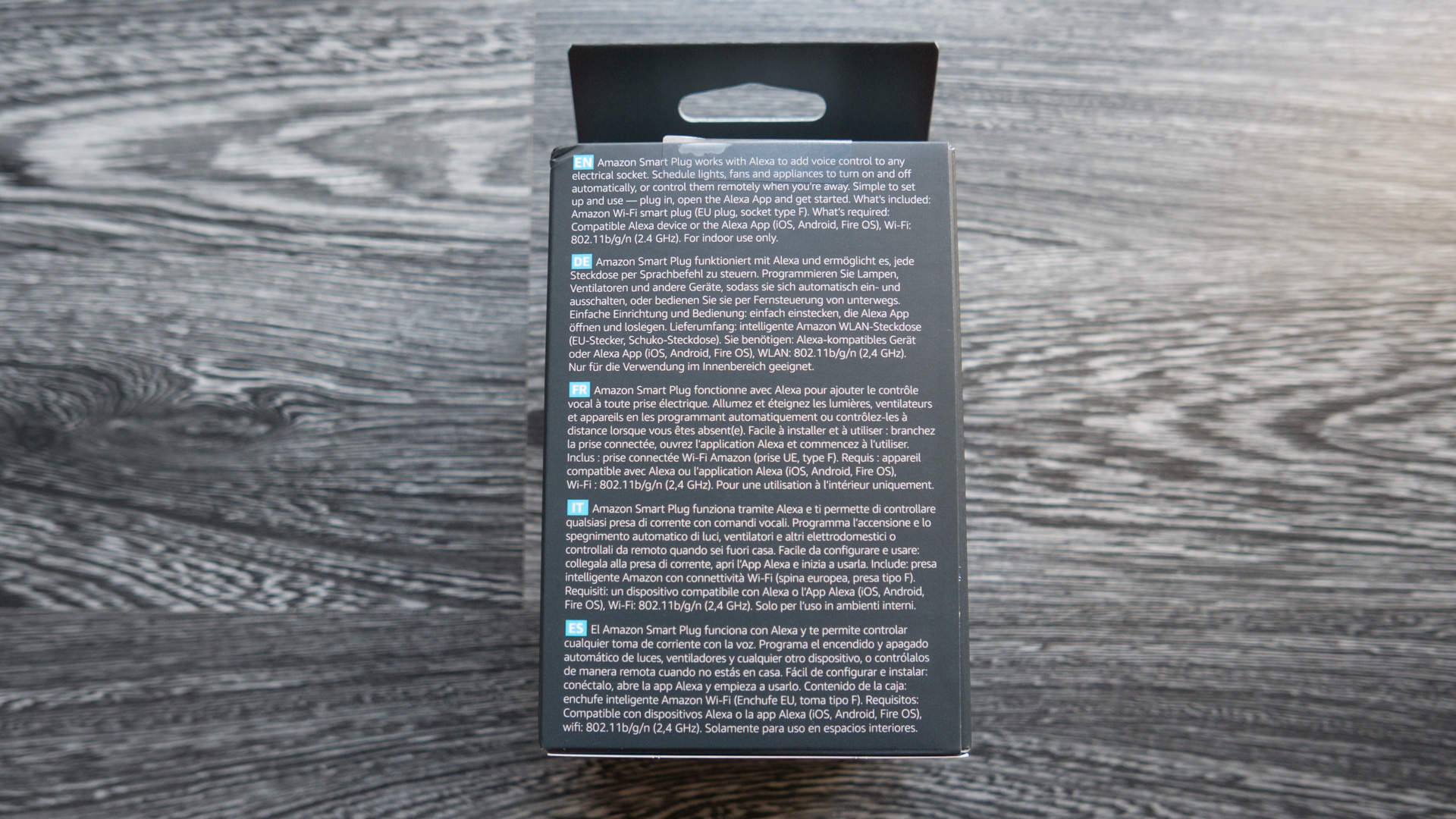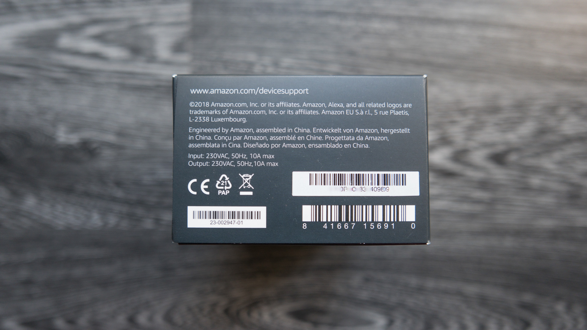 Schauen wir uns zu Beginn aber erst einmal an, wie der Amazon Smart Plug daher kommt, in dem wir ihn „unboxen“. Geliefert wird er in einer Verpackung, die das typische Design der anderen Amazon Produkte trägt.
