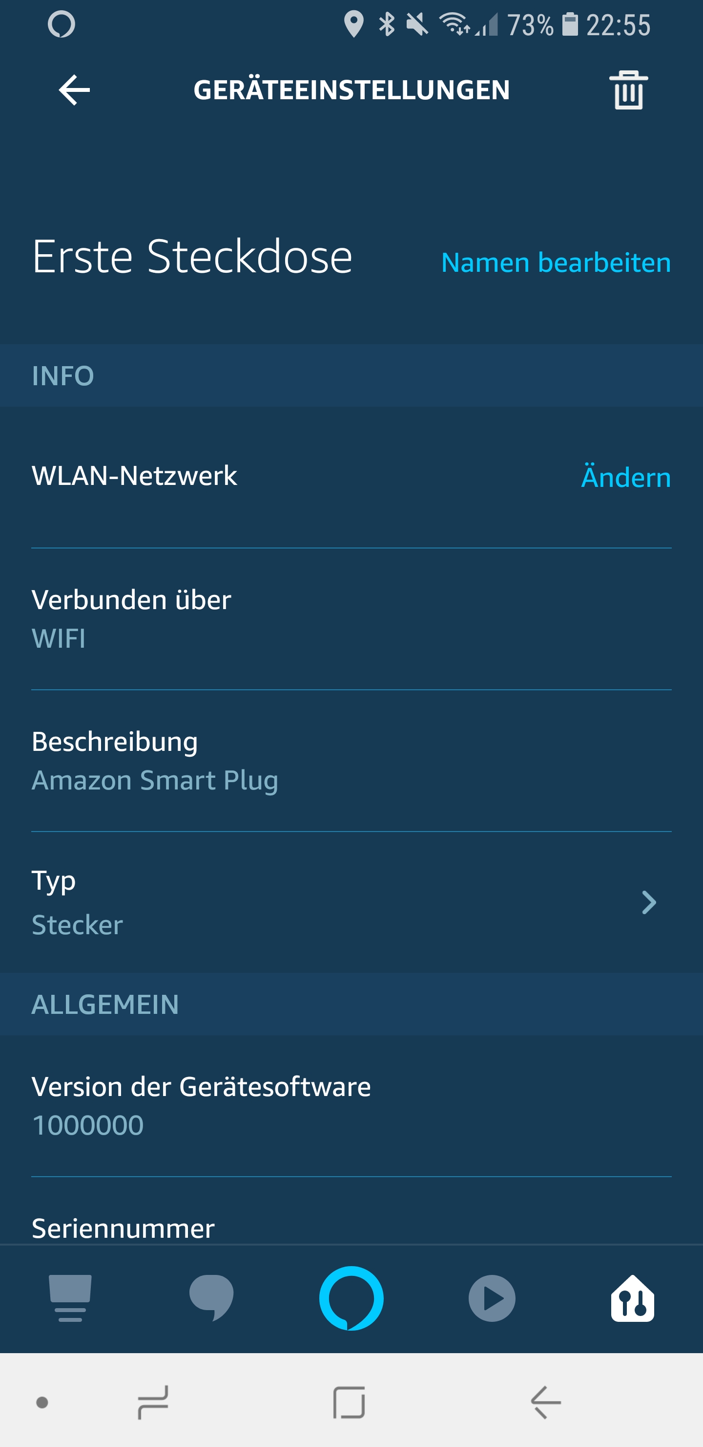 Ansonsten tut sie das, was man von ihr erwartet. Sie ist in der Alexa App als Steckdose gekennzeichnet und lässt sich dementsprechend in Routinen und Abläufen einbinden. Auch die Reaktionsgeschwindigkeit ist gut. Der Status der Steckdose wird natürlich angezeigt. So weiss man jederzeit, auch von überall aus, ob die Steckdose ein- oder ausgeschaltet ist. Das ist vor allem dann wichtig, wenn man sensible Geräte, wie vielleicht ein Bügeleisen oder ähnliches, an ihr angeschlossen hat.