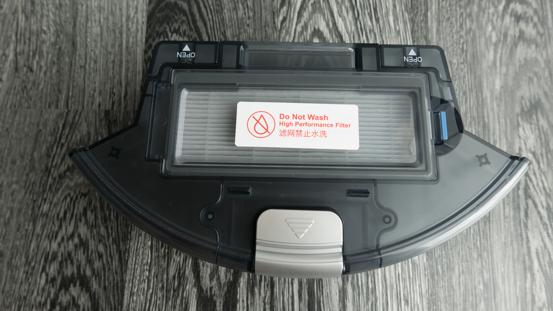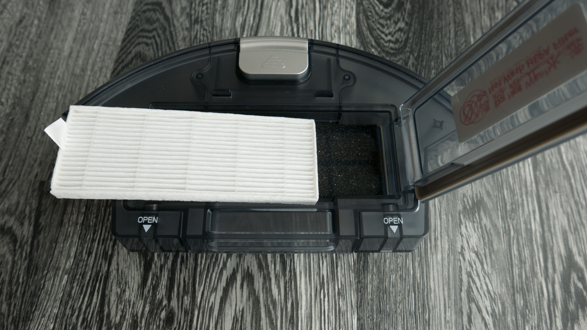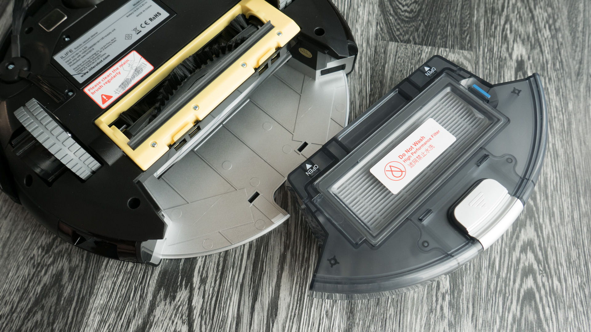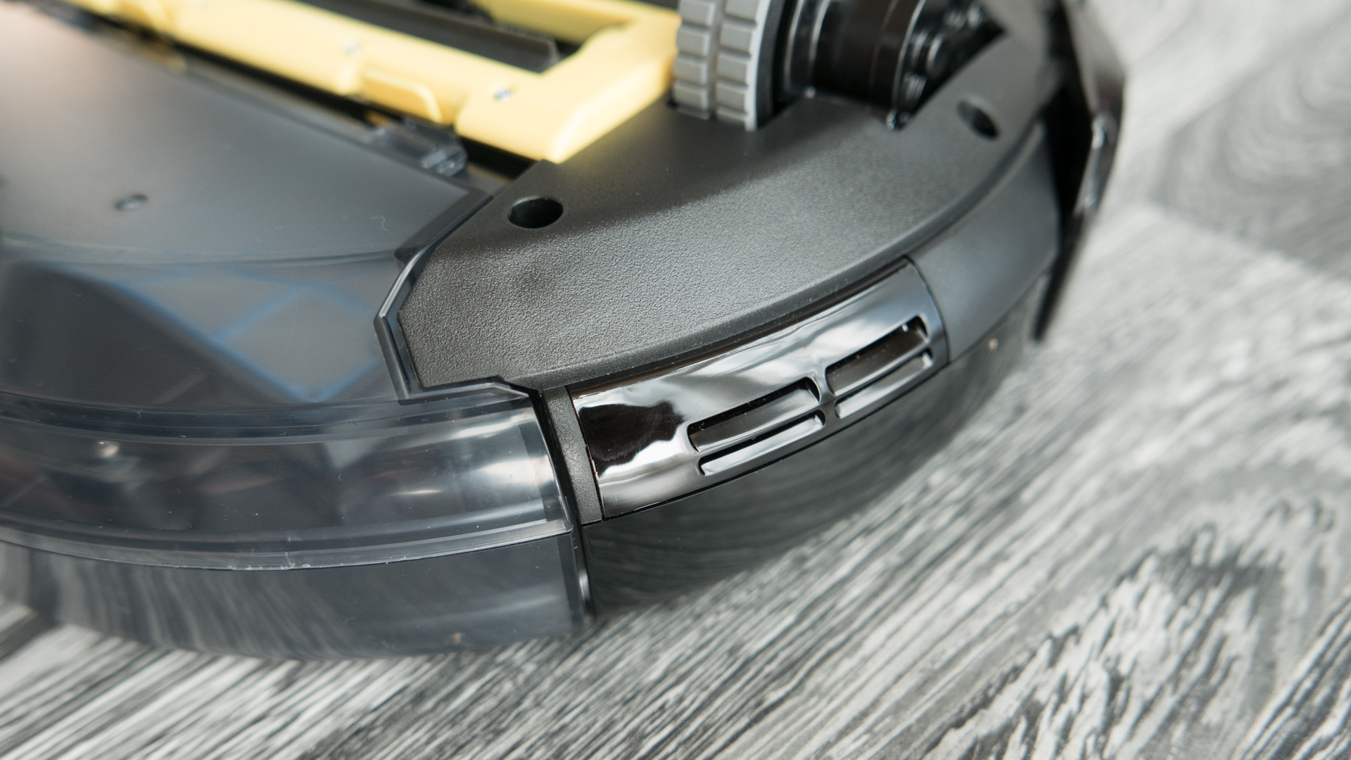 Der Staubbehälter ist schön zu entnehmen, hat meiner Meinung aber eine kleine Schwachstelle. Die Öffnung ist unten angebracht und so kann es passieren, dass beim Herausziehen schon ein Teil des Staubs auf den Boden fällt. Deshalb ist es ratsam, den Roboter vorher umzudrehen und erst dann den Behälter zu entfernen.