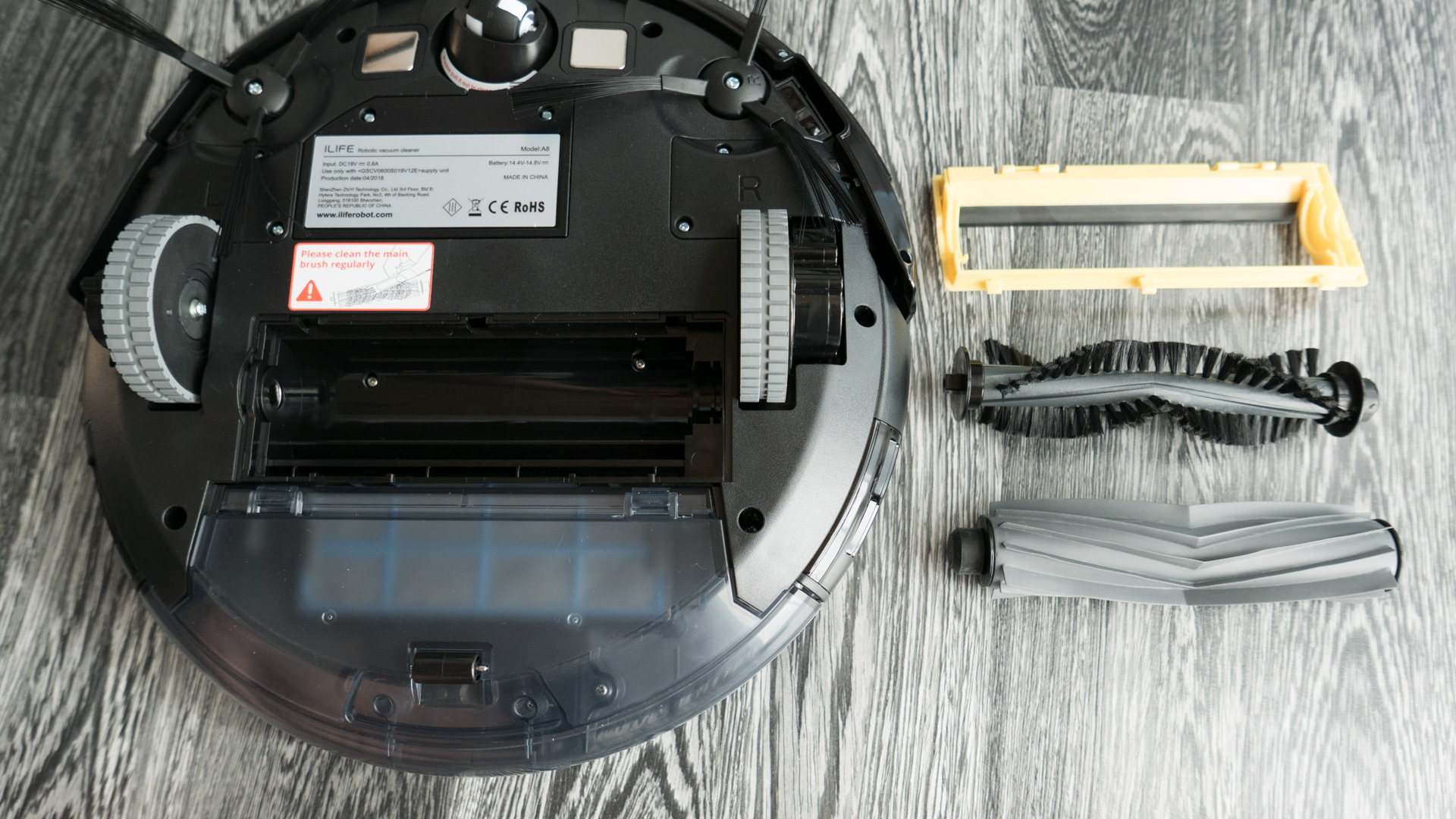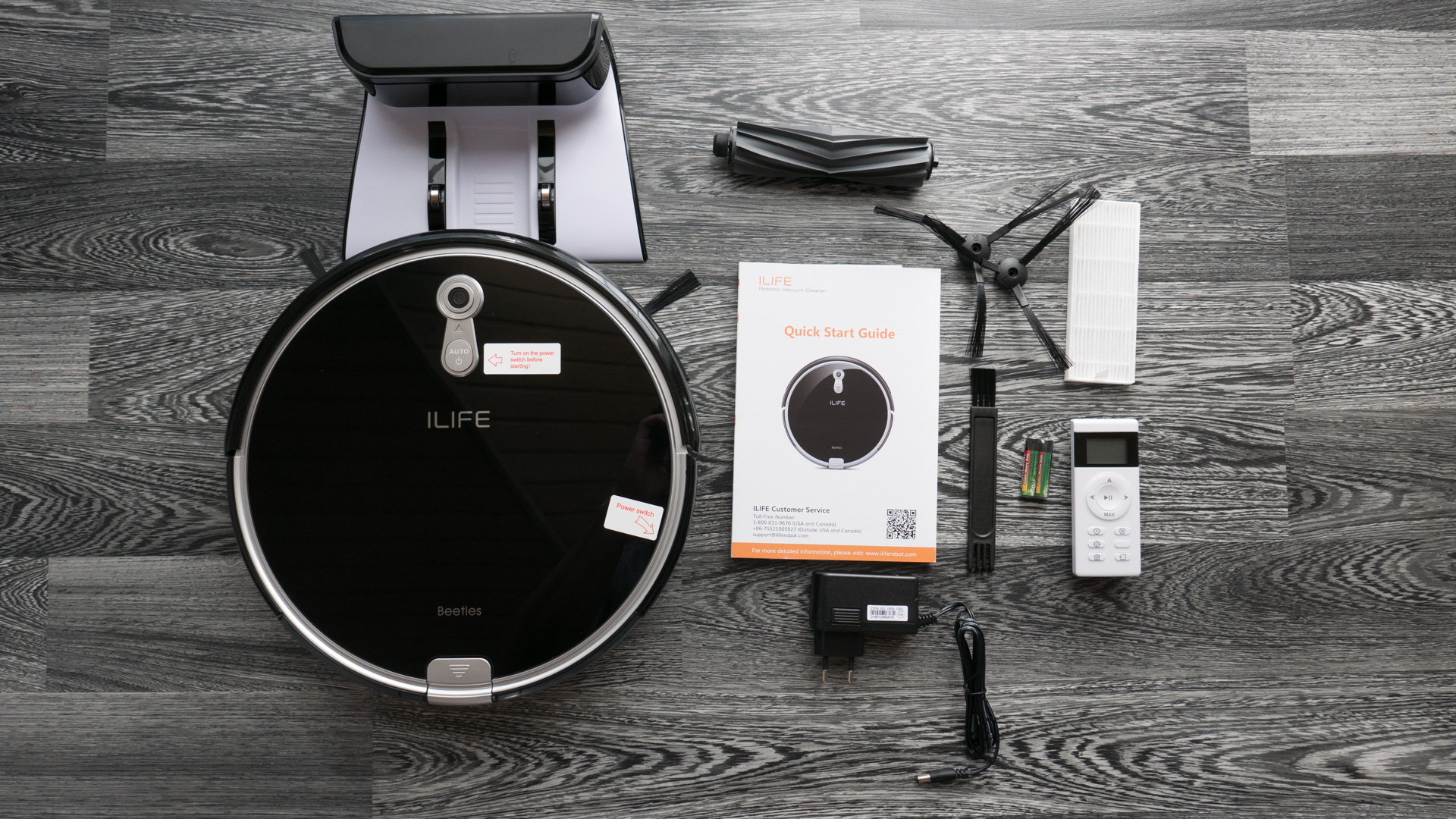 Die Einrichtung und erste Inbetriebnahme ist ein Kinderspiel. Nachdem der ILIFE A8 ausgepackt wurde, schließt man ihn am besten direkt an den Strom und lädt ihn auf. Sobald er vollständig geladen wurde, teilt er einem das auch per Sprachausgabe, in Englisch, mit.