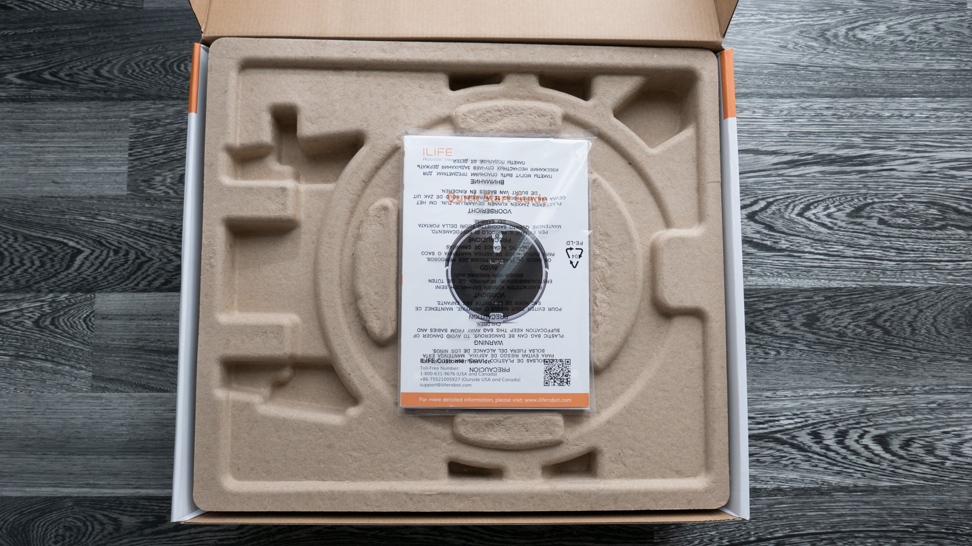 Im inneren ist ebenfalls alles vorbildlich verpackt. Alles sitzt passgenau an seiner Stelle und kann nicht verrutschen oder umherfliegen.Neben dem ILIFE A8 selbst, befindet sich noch die Ladestation, das Ladekabel, eine Fernbedienung mit Batterien, ein Reinigungswerkzeug, ein Ersatzfilter, zwei Ersatzbürsten sowie eine Lamellenrolle und eine Kurzanleitung im Lieferumfang.