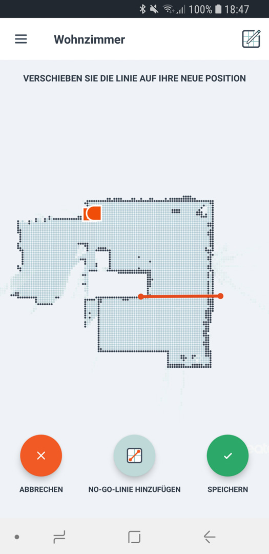 Die No-Go Lines sind wirklich eine richtig tolle Sache! Hat man bei anderen Geräten eine physikalische Markierung, die man irgendwo im Türrahmen befestigen muss, um dem Roboter den Durchgang zu verwehren, so kann man hier nach einer Justierfahrt, einfach in der Software eine Linie ziehen. Simpel aber genial. Das kenne ich so bisher noch von keinem anderen. Bei den Xiaomi Robotern kann man zwar in der Software Bereiche festlegen, die gereinigt werden sollen, aber so eine No-Go Line, ist teilweise noch besser!