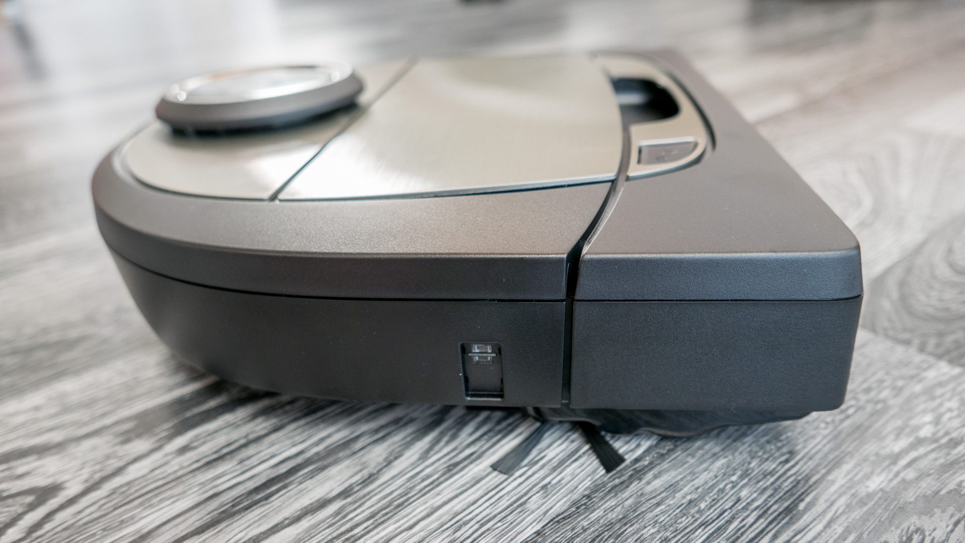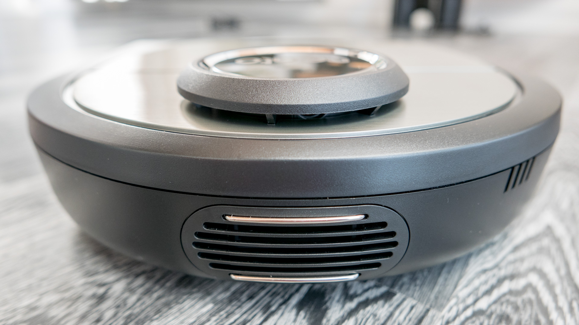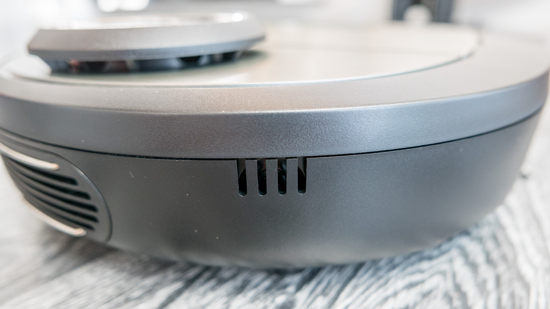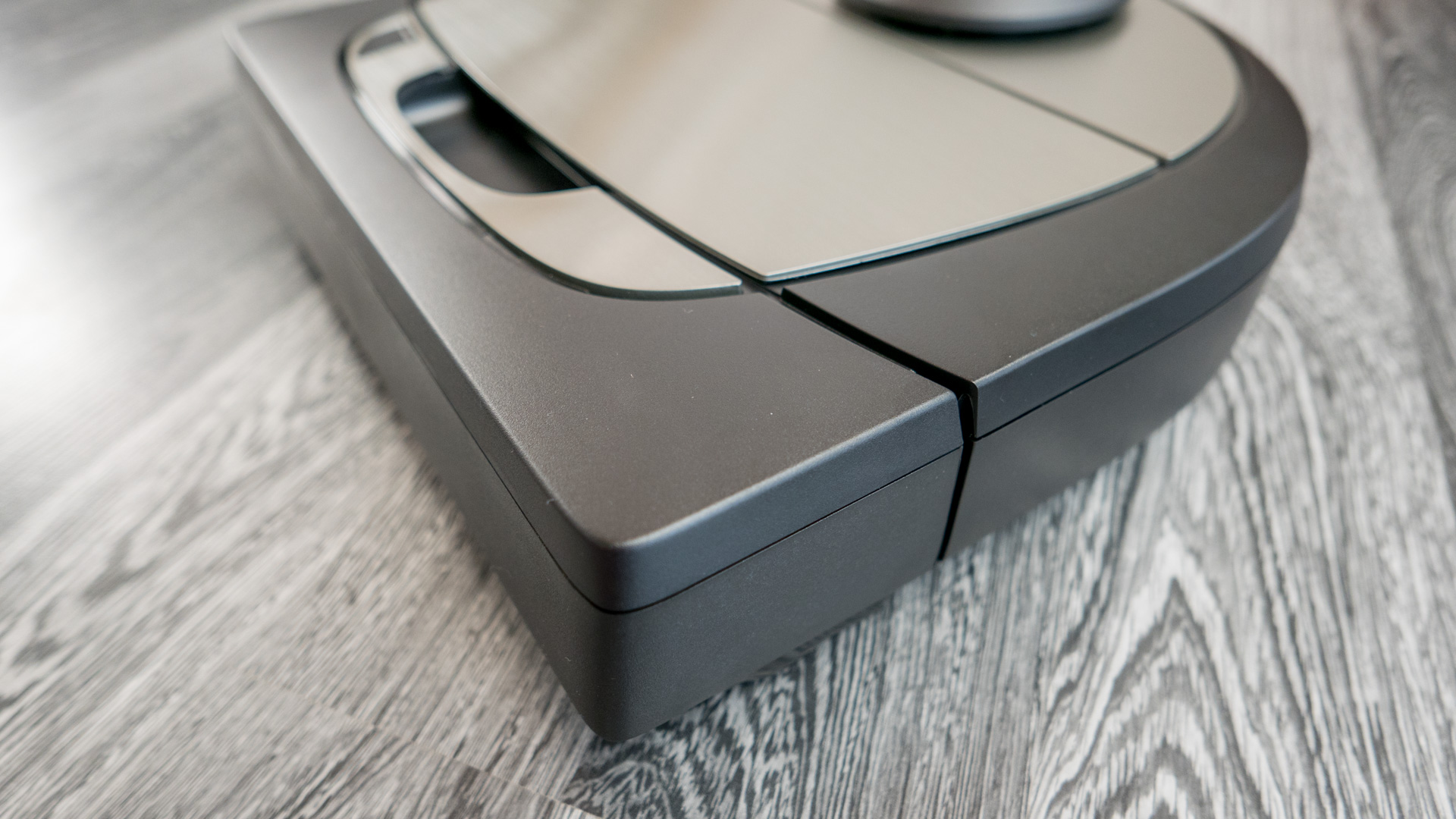 Dennoch finde ich den rauen dunklen Kunststoff auf der Oberseite des Roboters nicht so gut gewählt. Dieser fühlt sich in meinen Augen einfach nicht so hochwertig an, wie es zum Beispiel bei dem Vorwerk Kobold VR 200 oder dem Xiaomi Mi Robot 1 & 2 der Fall ist. Dort ist die Oberseite nämlich komplett hochglanz und glatt gehalten. Auch die Front, die beweglich ist um Hindernisse zu erkennen, klingt meinem Empfinden nach so, als ob dort etwas viel Spiel vorhanden ist. Wie ich das genau meine, seht ihr auch in dem Video oben.