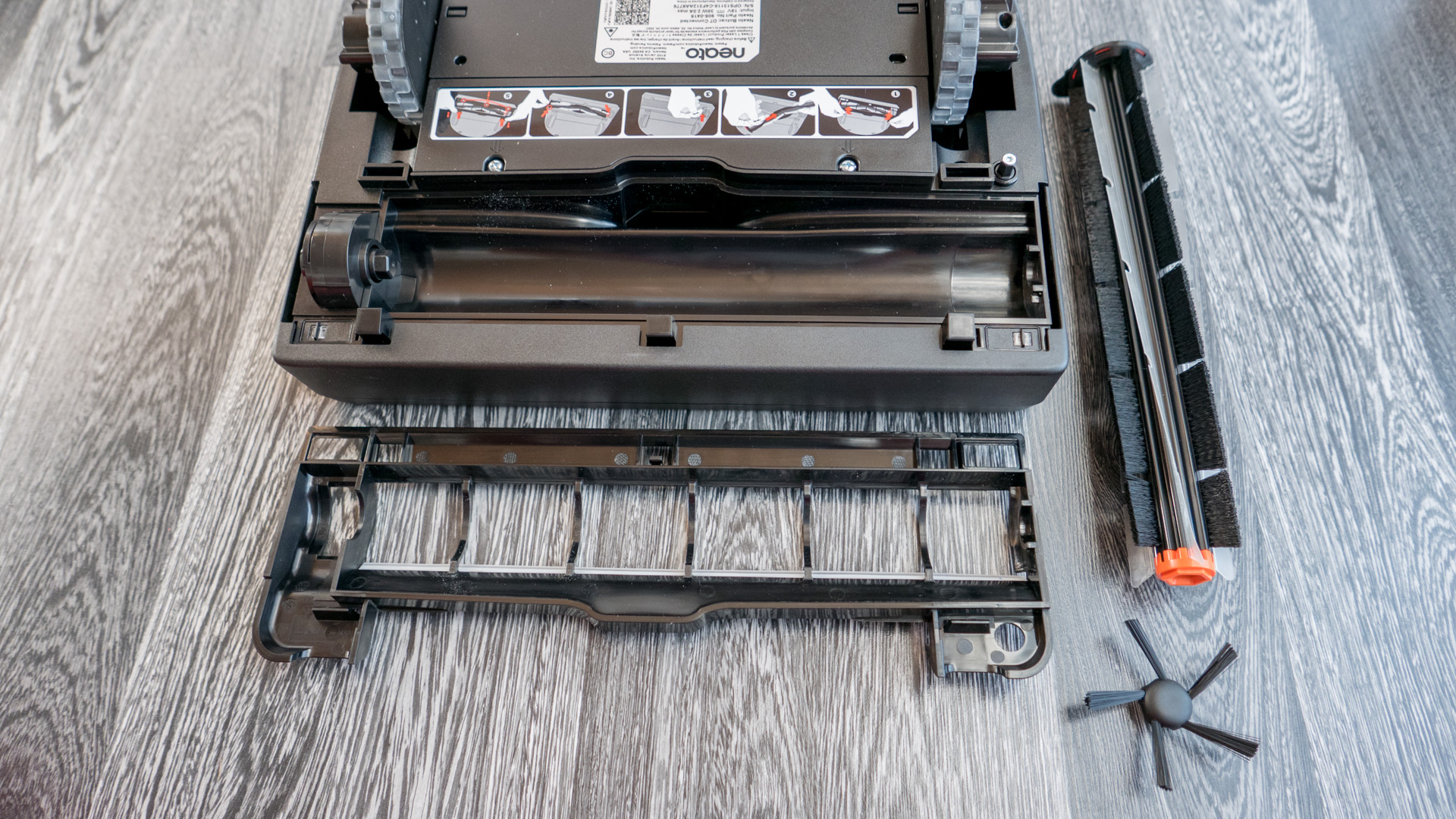 Der Staubbehälter des Botvac D7 ist sehr komfortabel zu entnehmen und auch zu reinigen. Dazu entfernt man lediglich den Filter und kann ihn dann ausklopfen. Auch der Filter selbst, lässt sich so komfortabel reinigen.