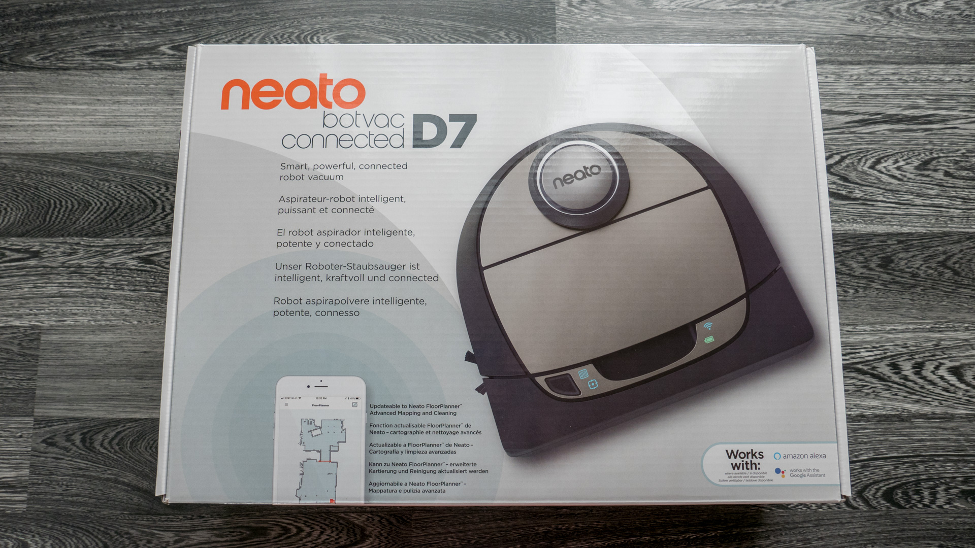 Hier in Deutschland kann man den Botvac auch per Sprache steuern, allerdings vorerst nur mit Alexa und nicht wie auf der Verpackung abgebildet, mit dem Google Assistent. Diese Unterstützung gibt es bisher nur in manchen Ländern.