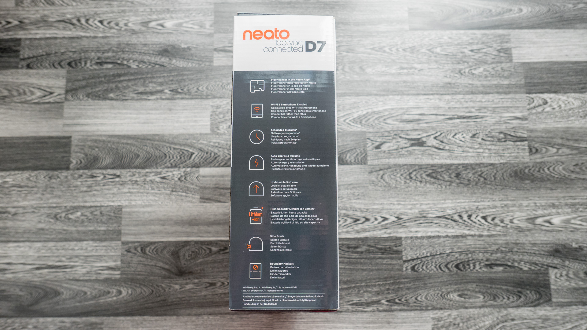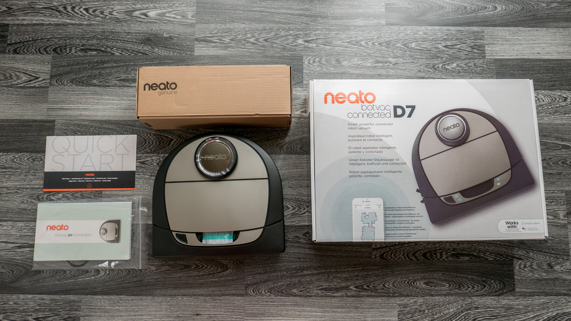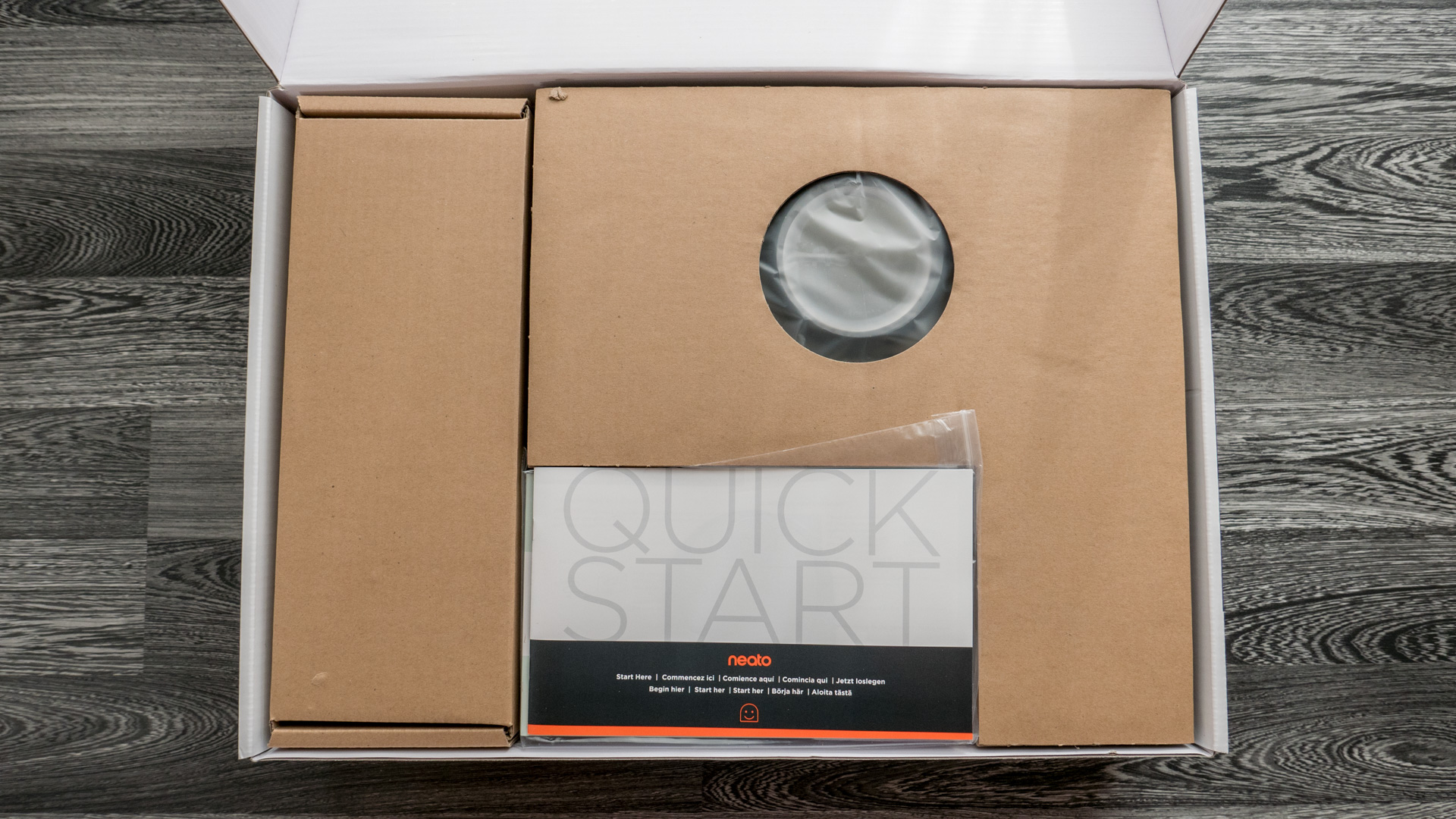 Schauen wir uns nun einmal an, was beim Neato Botvac D7 so an Zubehör mitgeliefert wird und wie alle Teile verstaut und verpackt sind.