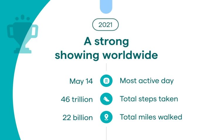 Der aktivste Tag des Jahres 2021 war der 14. Mai. Insgesamt 22 Mrd. Meilen hätten die Fitbit-Nutzer im letzten Jahr zurückgelegt, wie das nachfolgende Bild zeigt: