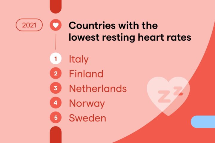 Den niedrigsten Ruhepuls haben Nutzer in Italien, danach Finnland, Niederlande, Norwegen und Schweden: