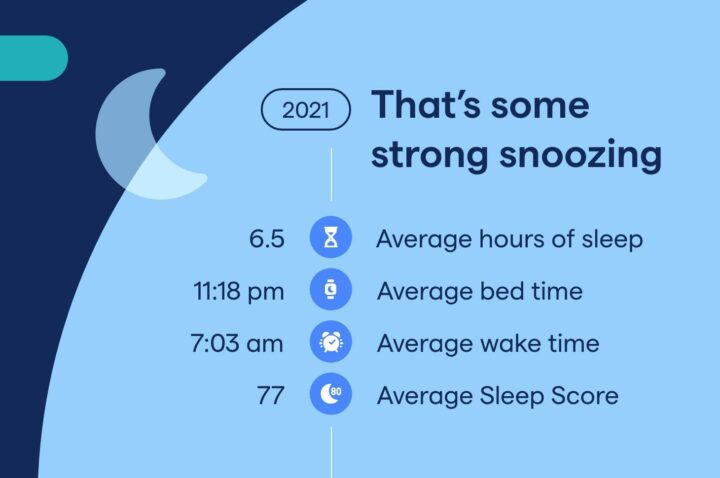 Bei der Auswertung der Schlafdaten kam Fitbit auf eine durchschnittliche Schlafdauer von 6,5 Stunden. Dabei liegt die durchschnittliche Einschlafzeit bei 23:15 Uhr und die durchschnittliche Aufwachzeit bei 07:03 Uhr.