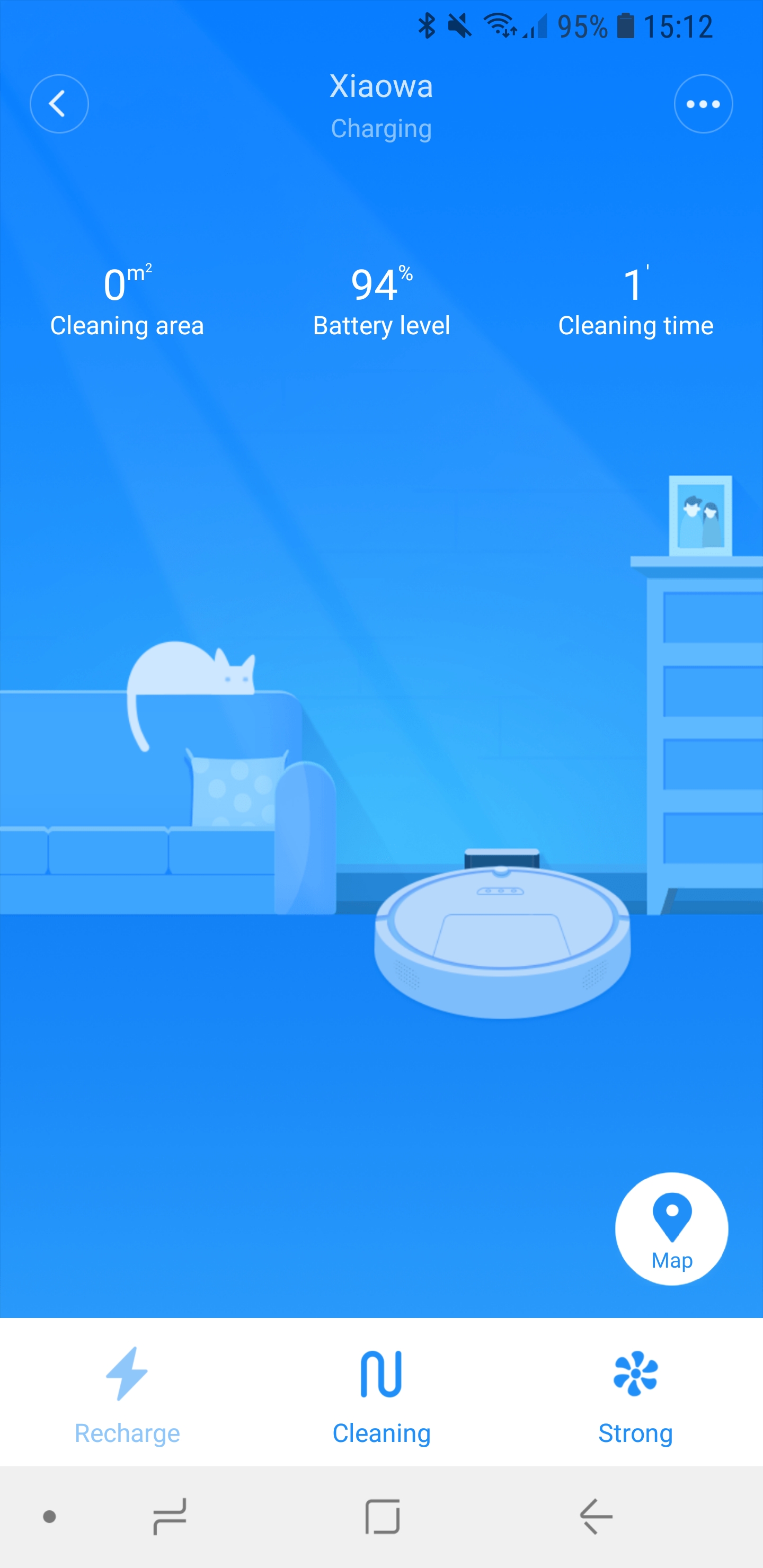 Aus der App heraus kann man nur den normalen Saugvorgang starten und eben die Leistung auswählen. Neben der Standardfunktion, in der er einfach alle Räume saugt, kann man noch den „Area Cleaning Mode“, über den Roboter selbst, auswählen. Dazu stellt man den roborock Xiaowa E20 einfach in einen bestimmten Bereich, welcher dann explizit einzeln gereinigt wird.