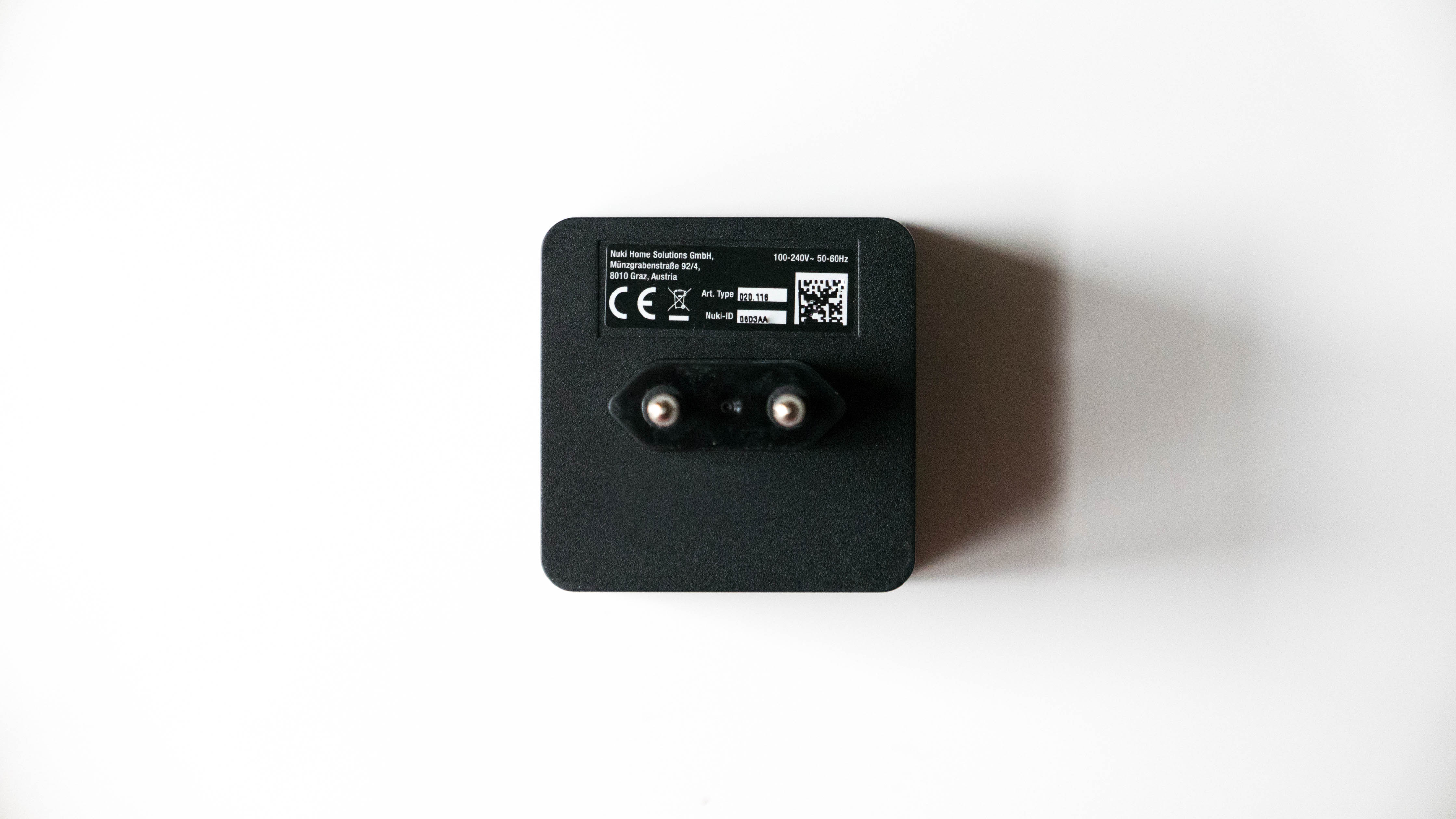 Zu Beginn möchte ich euch kurz die Bridge vorstellen. Letztendlich sieht sie aus wie ein einfacher Stecker, der nur in die Steckdose gesteckt wird. Sucht für ihn einen geeigneten Platz in der Nähe eurer Haustür, um eine gute Verbindung zu dem Nuki Smart Lock zu gewährleisten.