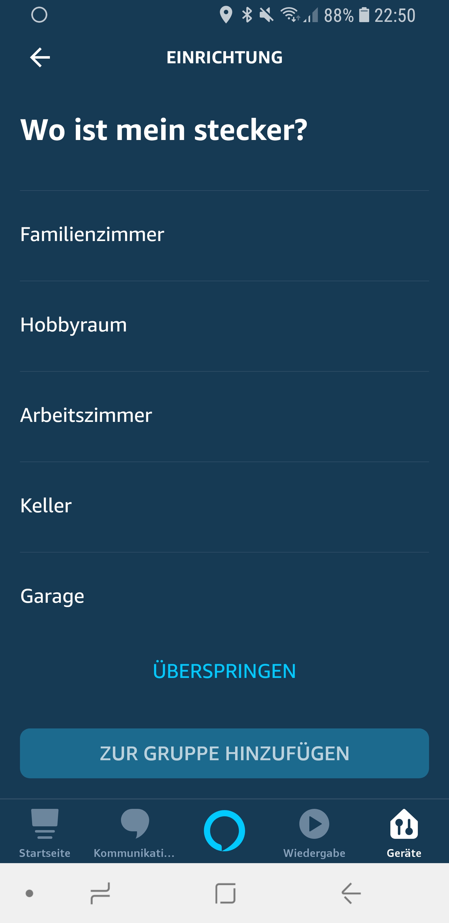 - Nun könnt ihr die Steckdose noch in eine Gruppe einteilen. Wählt „Gruppe wählen“ oder einfach „überspringen“, wenn ihr das später machen wollt.