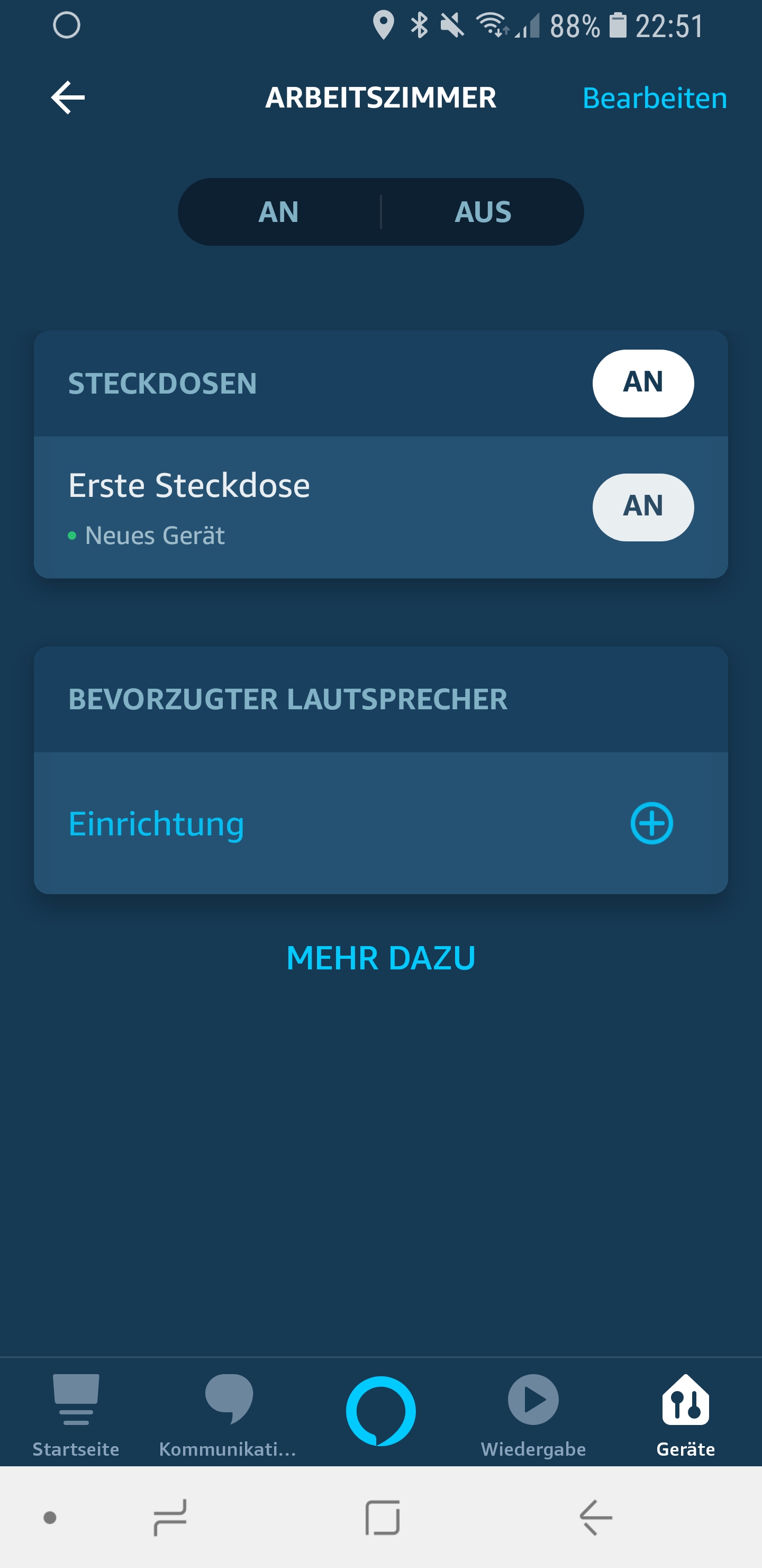 Am schnellsten geht es von statten, wenn ihr einfach Alexa den Befehl gebt: „Alexa, suche neue Geräte“. Dazu muss sich die Steckdose natürlich im Kopplungsmodus befinden. Wie das geht, seht ihr bei Punkt 5. Ansonsten ist das Einrichten aber auch über die App möglich.