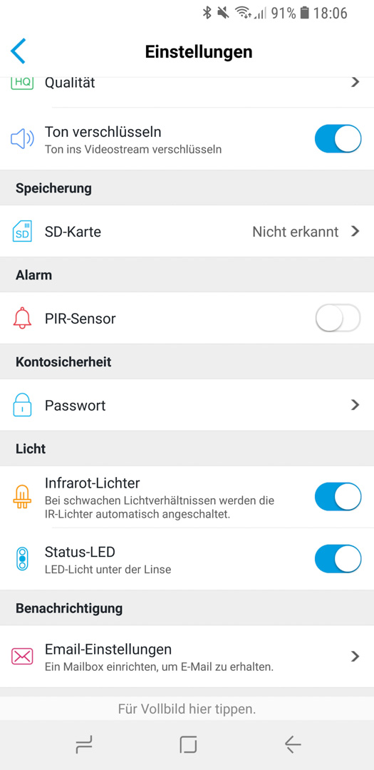 Nachdem die Kamera installiert und eingerichtet ist, gibt es viele Einstellungsmöglichkeiten. All diese zu behandeln, würde den Rahmen sprengen. Deshalb seht ihr an den Option schon, was alles möglich ist und was man personalisieren kann.