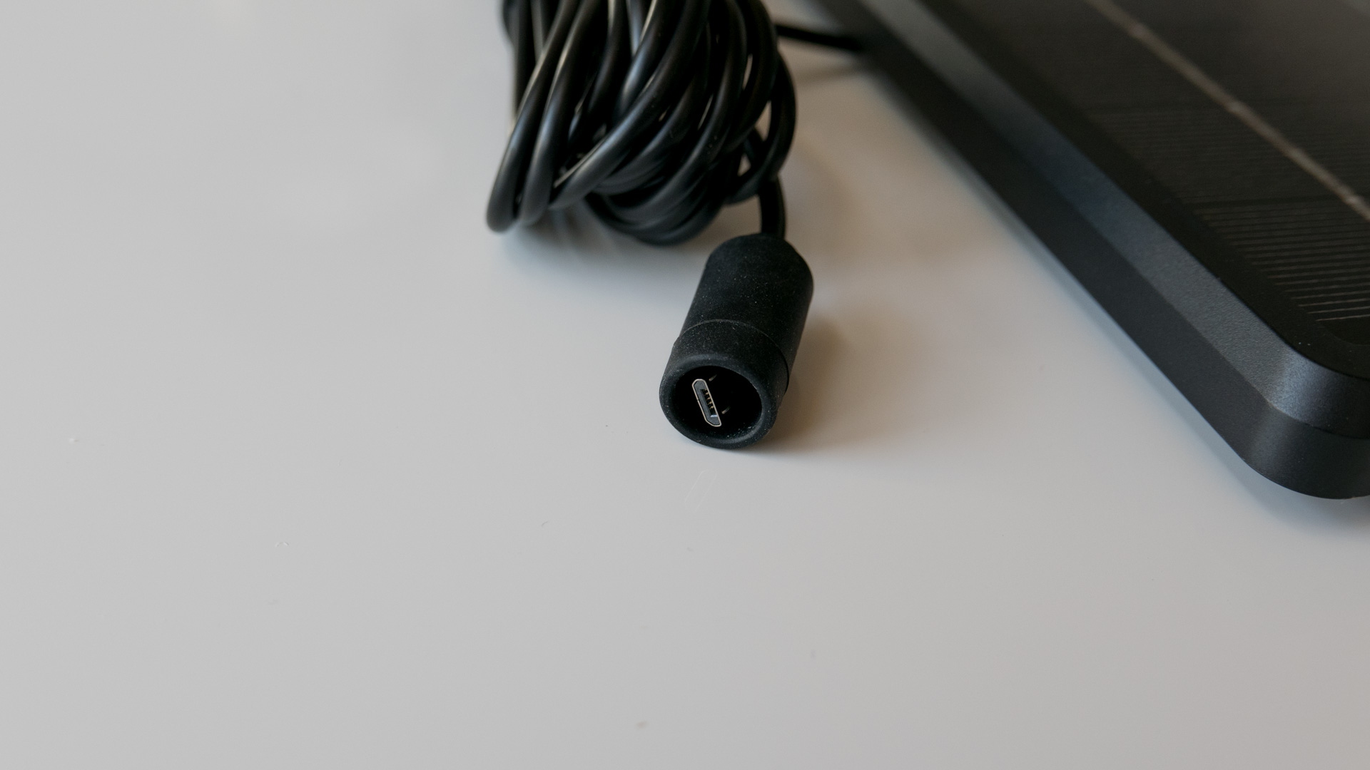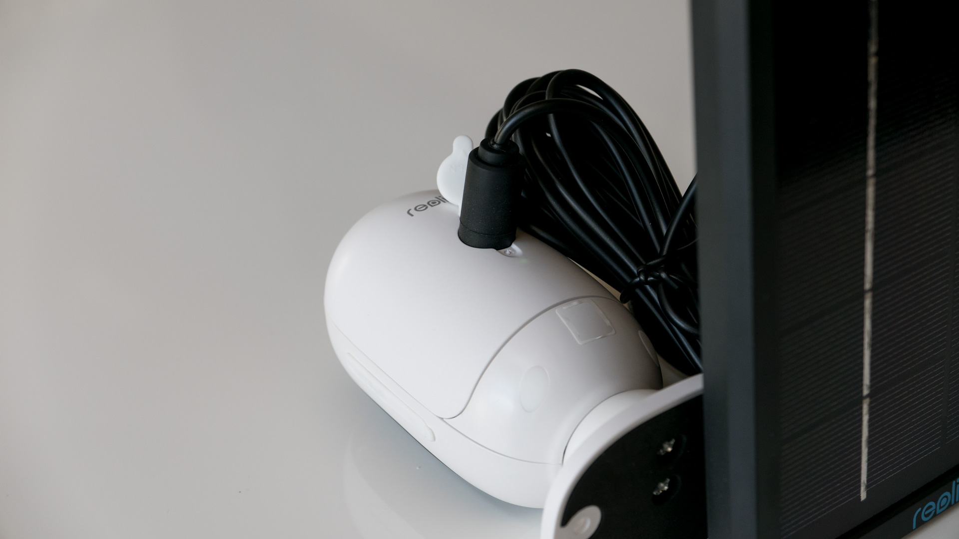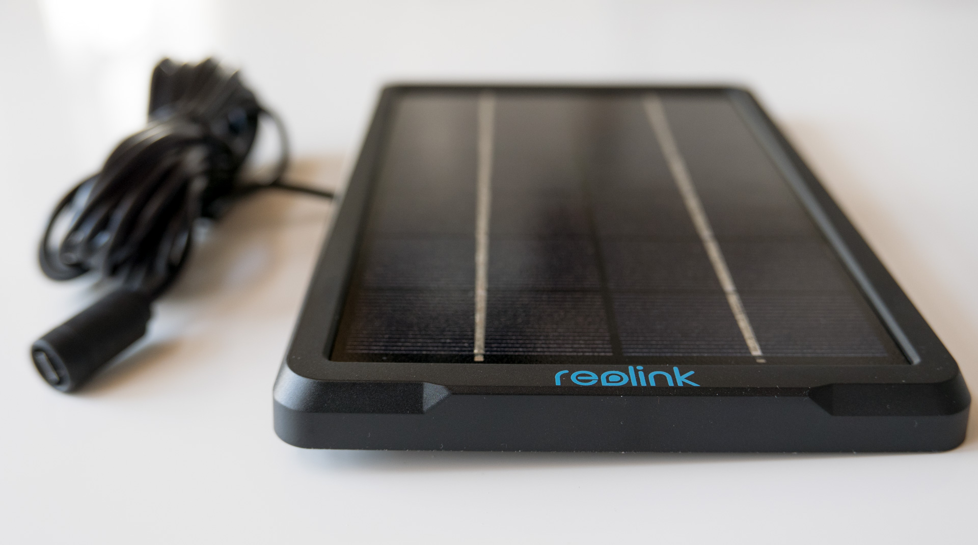 - Das Reolink Solar Panel mit festverbautem Kabel