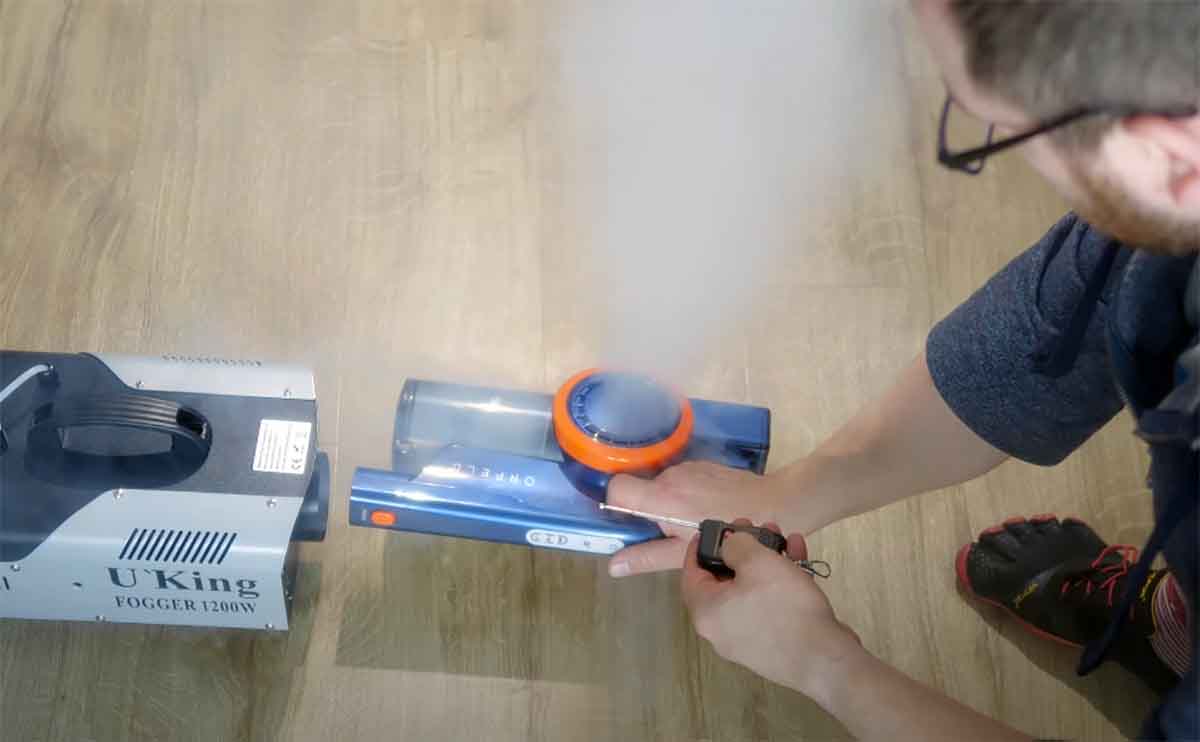 Natürlich ist es wichtig zu erwähnen, wie ich die Filterleistung teste. Dabei nutze ich eine Nebelmaschine, bei welcher ich den erzeugten Nebel direkt am Auslass mit dem Akku-Staubsauger auf höchster Saugstufe aufsauge. Bleibt der Nebel im Sauger gilt der Test als bestanden. Tritt an irgendeiner Stelle Nebel aus, gilt er als nicht bestanden. Natürlich ist mir klar, dass ich hier nicht nach wissenschaftlicher Standards arbeite, jedoch konnte ich in den bisher durchgeführten Tests sehen, dass man die Leistung der Filter so durchaus gut unterscheiden kann.