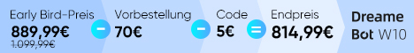 20.01.22: Beim Shop Goboo kann der Dreame W10 ab sofort vorbestellt werden. Der Presale-Preis liegt bei 814,99 €! 70 Euro Rabatt gibt es bei der Anzahlung von 30 Euro und 5 Euro mit dem Code „ZBANX01“.