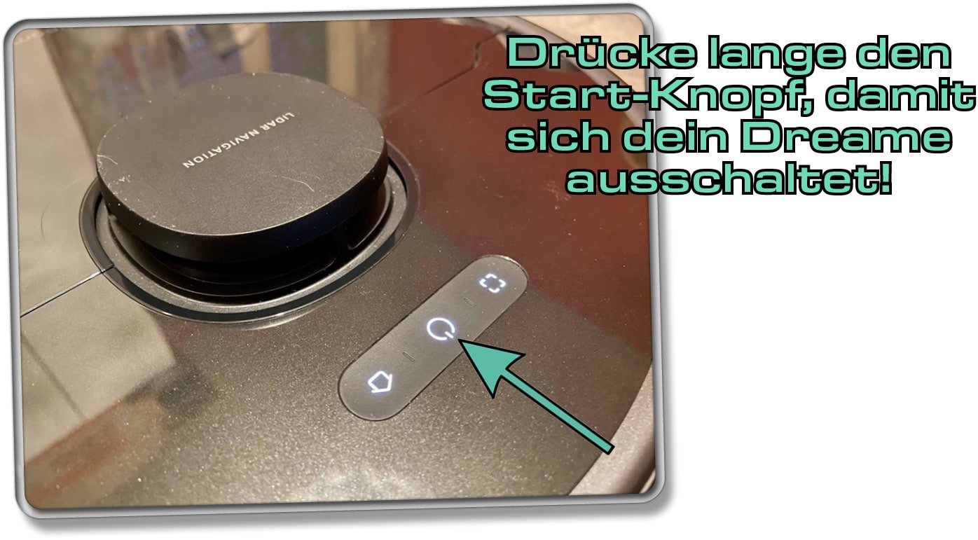 Schalte den Dreame Saugroboter aus und wieder ein