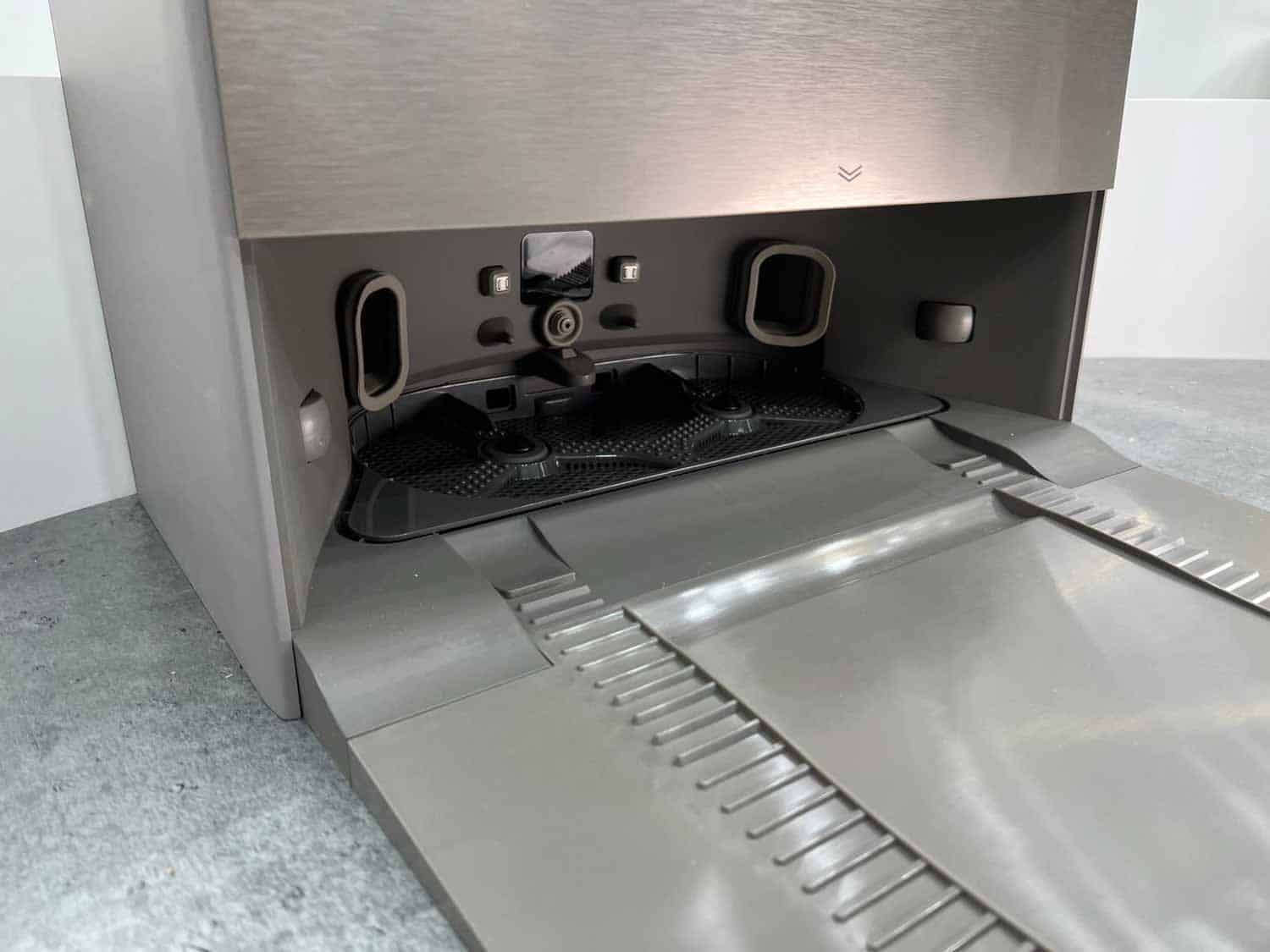 Die Reinigungsstation des Roboters beinhaltet das stetige Auswaschen der Wischmopps mit frischem Wasser aus einem Frischwassertank. Das Abwasser wird in einen Schmutzwassertank gepumpt. Das Gerät trocknet nach jeder beendeten Reinigung die Wischmopps mit einem Heißluftverfahren. Zudem wird der Staubbehälter von Schmutz befreit, indem die Station diesen mit einem großen Unterdruck leer saugt. Der integrierte Wassertank des Roboters wird ebenfalls von der Station automatisch wieder aufgefüllt und automatisch mit einem Reinigungsmittel versetzt.