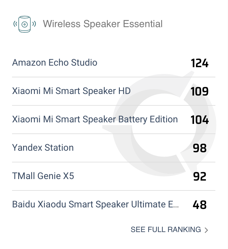 Auf Platz eine in der Gruppe „Essential“ landete der Echo Studio vor dem Smart Speaker von Xiaomi. Bei der Gruppe „Advanced“ konnte sich der Harman Kardon Citation 200 vor dem Google Home Max durchsetzen.