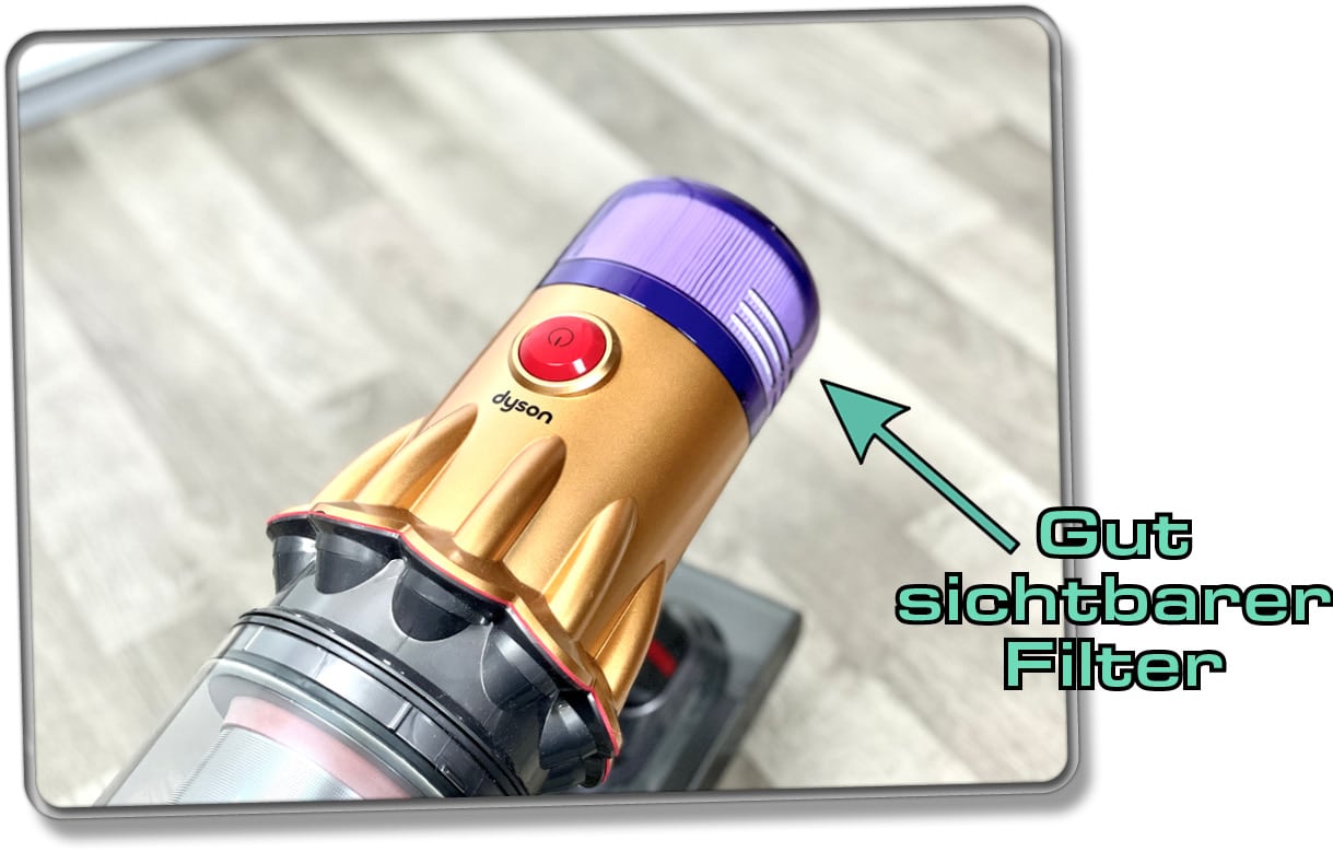 Die neuen modernen Dyson Akkusauger besitzen lediglich einen zu reinigenden Filter. Dieser ist um das Display am Heck angebracht und kann mit einer kleinen Drehung entriegelt und abgezogen werden. Ich zeige dir jetzt Schritt für Schritt, wie du diesen einfach reinigen kannst.