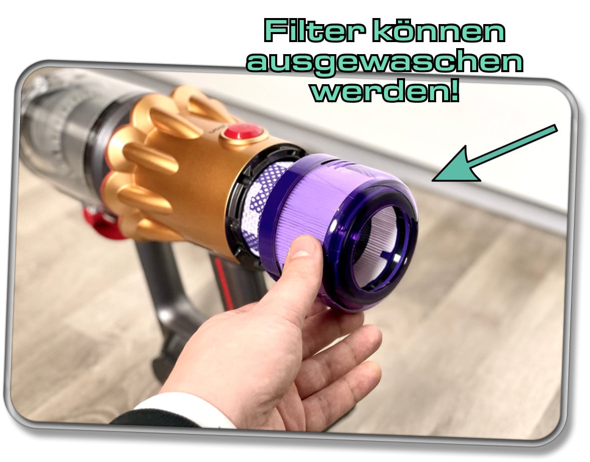 Tatsächlich ist der meist aufkommende Grund, warum ein Dyson Akkusauger nur noch schwach saugt, der, dass die Filter verstopft sind. Mit der Zeit lagern sich feinste Staubpartikel an den Filtern des Dyson ab, die die Leistung wahrlich reduzieren können. Zwar spricht Dyson von einer anhaltenden Saugkraft dank Zyklontechnologie, jedoch kam in der Praxis das Gegenteil schon oft vor. Nimm alle Filter heraus und klopfe sie gründlich aus. Ich persönlich nehme immer einen anderen Staubsauger und sauge sie regelmäßig aus. Viele Nutzer solcher Akkusauger nutzen auch Druckluft. Dabei sollte man jedoch vorsichtig sein, dass man auch die richtige Seite auspustet, um den Staub nicht noch tiefer ins Gewebe des Filters zu blasen. Am besten gelingt dir die Reinigung jedoch, wenn du die Filter unter fließendem Wasser auswäschst und im Anschluss 24 Stunden lang trocknen lässt.