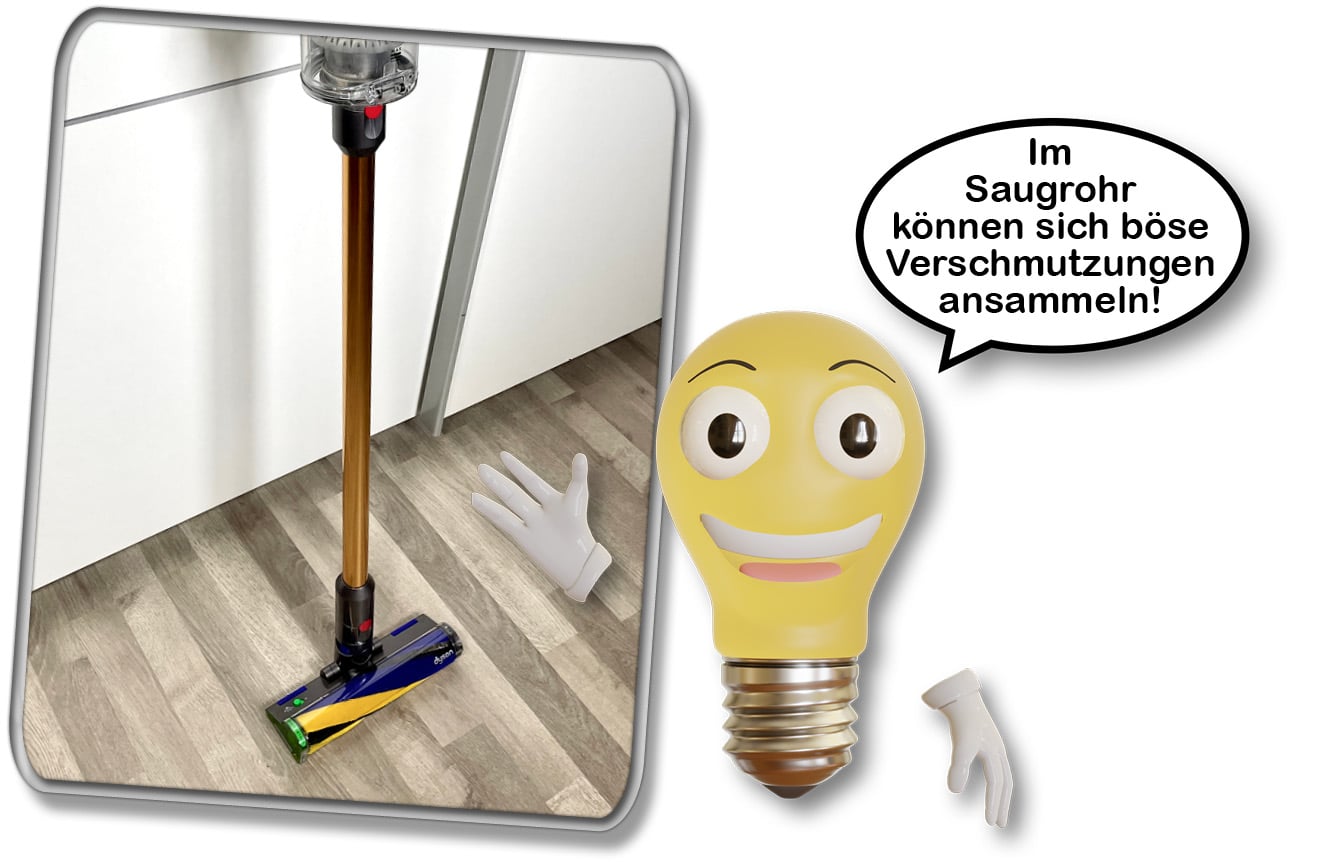 Ein weiterer Grund, warum der Dyson Akkusauger nicht mehr richtig saugt, könnte ein verstopftes Saugrohr sein. Bei großen Schmutzansammlungen kann es vorkommen, dass sich ein kleiner Haufen an Schmutz im Saugrohr festsetzt, der mit der Zeit immer größer wird. Überprüfe regelmäßig, ob das Saugrohr frei von Verschmutzungen oder festgesetztem Schmutz ist, damit die Leistung deines Dyson Akkusaugers nicht beeinträchtigt wird. Notfalls, versuche mit einem langen Gegenstand den Schmutz aus dem Rohr zu drücken und spül das Rohr im Anschluss gründlich mit Wasser aus.