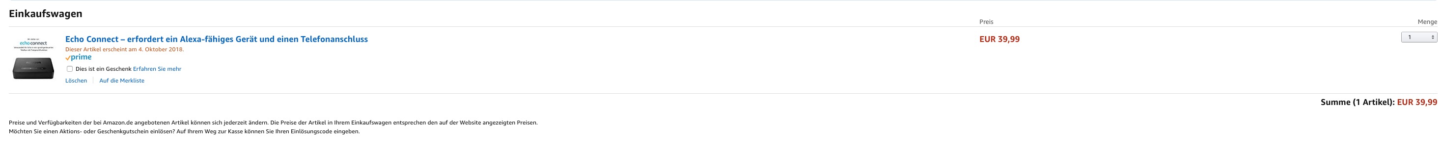 Wenn man den neuesten Gerüchten Glauben schenken darf, wird der Echo Connect ab dem 04.10.2018 auch endlich bei uns zu bestellen sein.