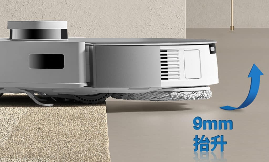 Verbaut hat ECOVACS den Geräten eine 6000 Pascal starke Saugkraft. Das ist dieselbe Stärke, die auch die neuen Roborock Saugroboter S8, S8+ und S8 Pro Ultra besitzen. Endlich, nach vielem Gemecker zahlreicher Nutzer ist jetzt auch endlich die anhebbare Wischfunktion mit an Bord. Ganze 9 Millimeter kann der ECOVACS Deebot T20 seine Wischmopps anheben, wenn er Teppichboden erkennt.