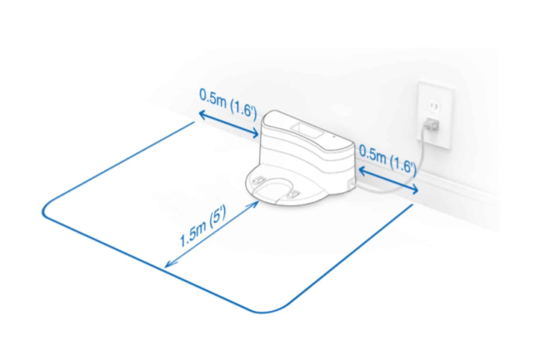 In den meisten Fällen führt die einfache Fehlplatzierung der Lade- oder Absaugstation zu einem Verdrehen oder Zerstören der Karte. Der Ausgangspunkt jeder Reinigung ist entscheidend für einen unproblematischen Ablauf der Reinigung. Achte beim Aufstellen der Station darauf, dass sie sich an einer geraden Hauswand befindet und dass genug Platz um sie herum verfügbar ist. Du solltest mindestens 50 Zentimeter zu beiden Seiten und 1 – 1,5 Meter nach vorn freien Platz lassen. Ebenso kann das Unterstellen der Station unter Möbeln, die zu niedrig sind, zu Schwierigkeiten führen.
