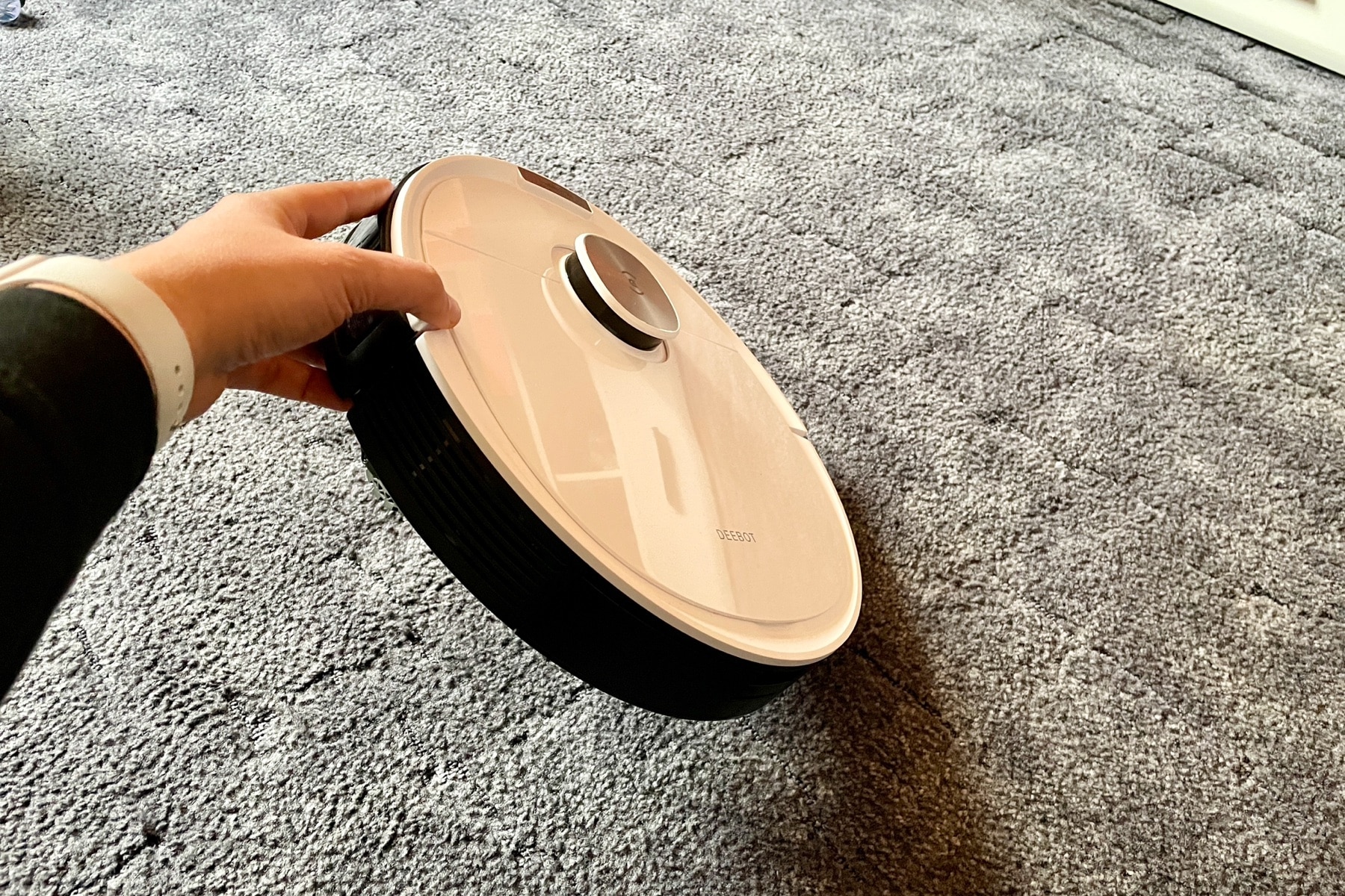 Tatsächlich kann das Anheben des Roboters während der Reinigung zu einer verschobenen oder kaputten Karte führen. Ist der eigene Deebot mal in einer Situation, die augenscheinlich nach einem Steckenbleiben führt, kommt man zuerst auf die Idee, den Roboter aus dieser zu befreien. Viele versuchen das Missgeschick mit einem Hochheben des Roboters zu beenden. Das ist absolut der ganz falsche Weg! Hebt euren ECOVACS Roboter auf keinen Fall während der Reinigung an, auch nicht, wenn er irgendwo nicht mehr herauskommt. Viel mehr ist es ratsamer, den Roboter komplett zu stoppen und das Hindernis zu beseitigen.