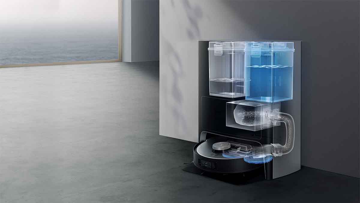 Der Deebot X1 Omni vereint alle technischen Fortschritte von Ecovacs in einem Modell und bringt zusätzlich weitere neue Features mit. Seine Basisstation kann nun nicht nur den Staub absaugen, sondern auch die drehenden Wischmopps reinigen und trocknen. Gleichzeitig wird das Schmutzwasser abgeführt und der Wassertank kann automatisch neu befüllt werden.