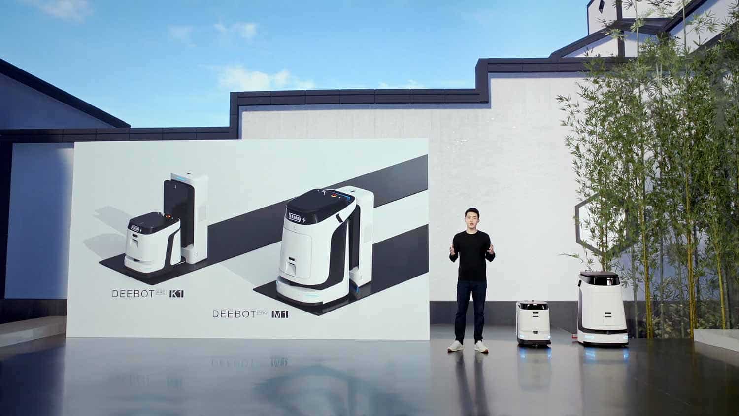 ECOVACS hat auf der heutigen Produktvorstellung neue Saugroboter für industrielle Zwecke vorgestellt. Der Deebot M1 und K1 interagieren miteinander und können große Flächen abdecken.