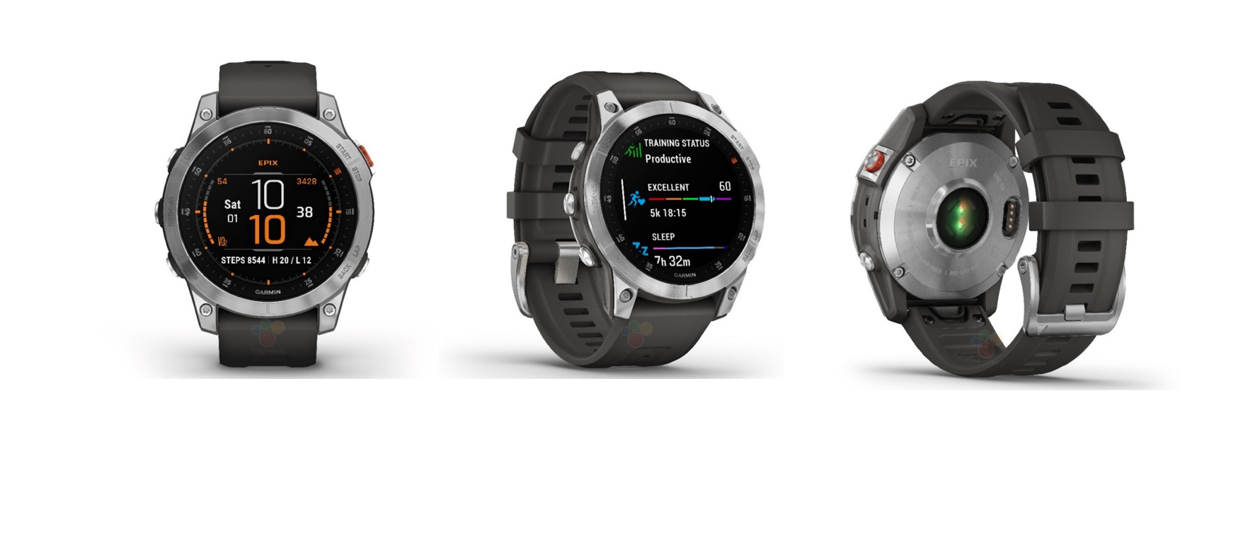 Diese beiden Smartwatches werden wieder eine kompaktere GPS-fähige Uhr sein, die mit einem E-Ink-Display ausgestattet ist. Damit wird sie zwar weniger komfortabler zu bedienen sein, aber dafür bietet sie eine längere Akkulaufzeit. Auch sie wird über Funktionen wie Schrittzählung, Herzfrequenzmessung und Schlaftracking verfügen.