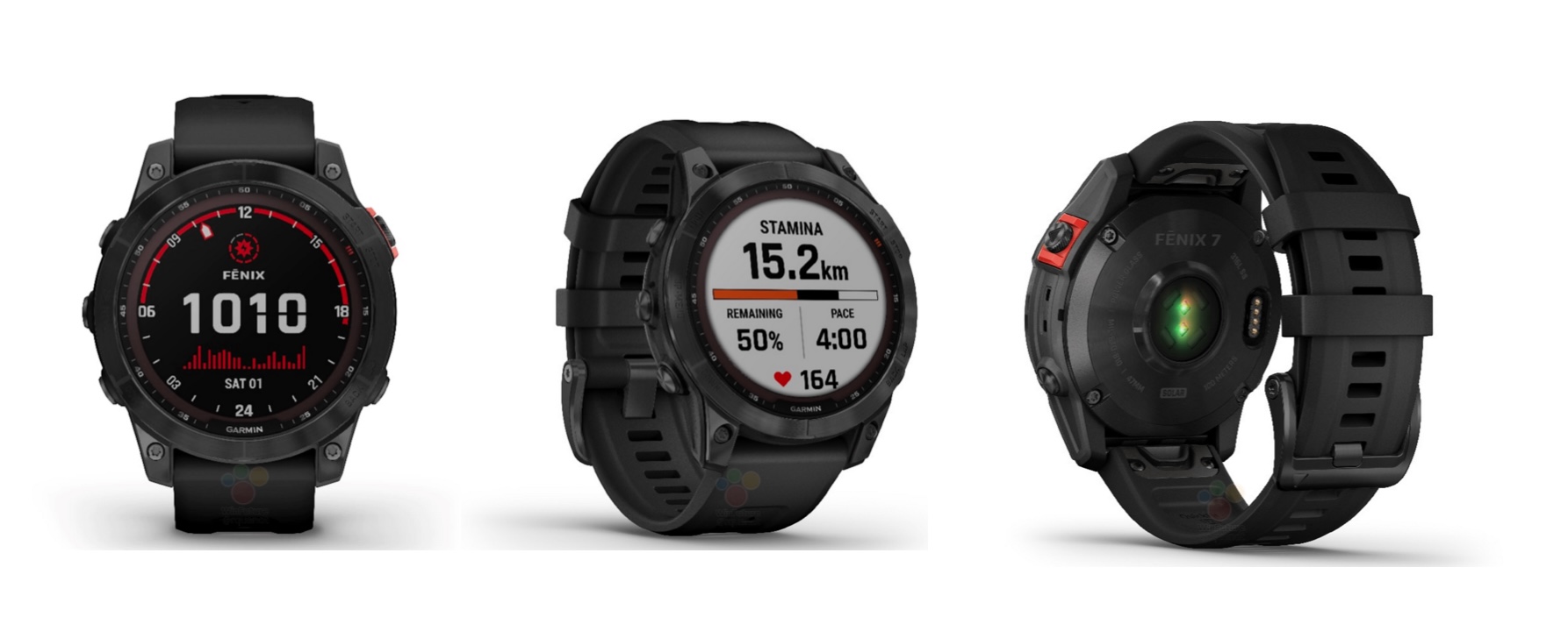 Erwartet wird anhand der gefundenen Bilder außerdem die Garmin Fenix 7, Fenix 7S und Fenix 7X, die mit einem überarbeiteten Design auflaufen. Auch bei diesen Modellen besteht das Gehäuse aus verstärktem Kunststoff und Edelstahl und es stehen – wie immer – mehrere Farbvarianten zur Auswahl. Die Tracking-Funktionalitäten sind ähnlich und es gibt wieder ein integriertes Solar-Panel, das in der Lage sein soll, den Akku einiger Varianten unterwegs ein wenig zu laden.
