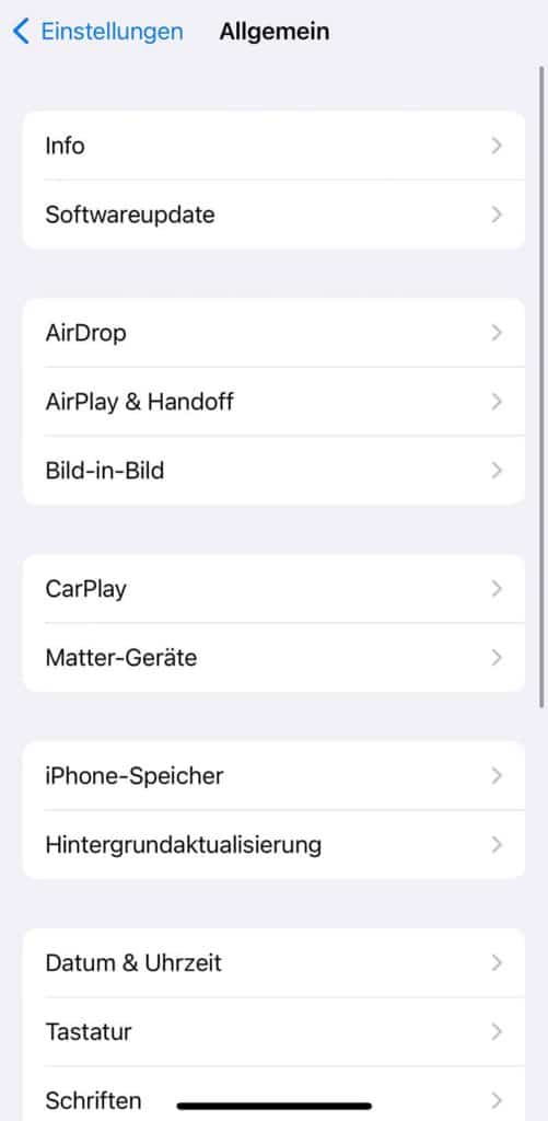 Matter-Geräte in den Einstellungen von iOS 16