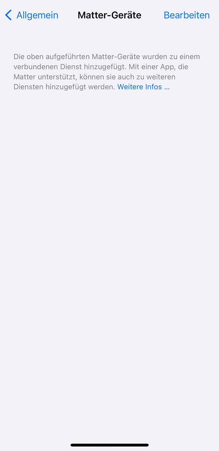 Wer am Beta-Programm von Apple teilnimmt, der kann sich iOS-Updates schon etwas früher installieren, als der normale iPhone-Nutzer. So ist es auch aktuell bei der Version iOS 16.1 der Fall, welche seit wenigen Tagen zum Download bereitsteht. In dieser Version findet man nun den ersten Hinweis auf den neuen Smarthome-Standard Matter, welcher in den Einstellungen zu finden ist. Unter dem Punkt „Matter-Geräte“ findet man aktuell zwar noch eine leere Seite, allerdings zeigt dies, dass der Start von Matter unmittelbar bevorsteht.