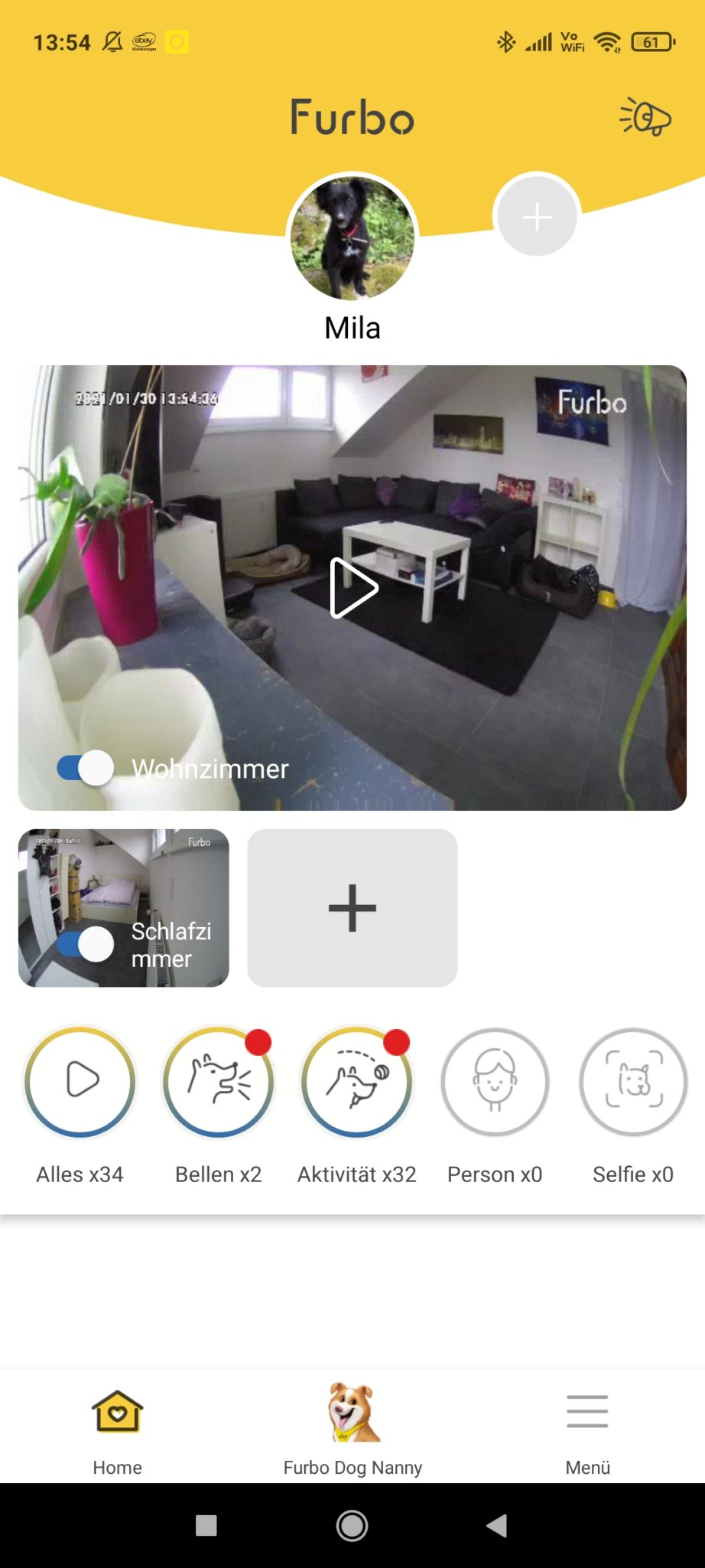 Zudem kann man auch mehrere Furbo Hundekameras in der App speichern und dann in der Live-Übertragung ganz einfach über Pfeile auf dem Smartphone-Display zwischen den Geräten wechseln. Ich habe zwei im Einsatz. Anhand der Darstellung in der App, gehe ich davon aus, dass man bis zu drei Geräte anmelden kann.
