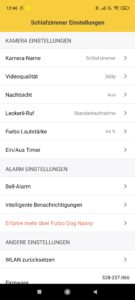 Über die App kann man jederzeit die Kamera aktivieren. Sie bietet die Möglichkeit Liveaufnahmen, aber auch Schnappschüsse des Hundes anzufertigen. Die Kamera ist nicht verstellbar, bietet aber dank dem 160-Grad-Weitwinkel dennoch eine gute Übersicht über den Raum. Mit einer Fingerbewegung kann man über die App auch in den Bildern zoomen. Durch die Ausstattung mit Infrarot, können auch nachts Bilder und Videos aufgenommen werden. Die Qualität der Bilder im Nachtmodus hat mich wieder positiv überrascht. Man auch verschiedene Videoqualitäten einstellen (1080p, 720p, 360p). Allerdings lief bei mir die Live-Übertragung in der höchsten Auflösung nicht mehr ganz flüssig. Deshalb habe meine Furbo immer auf 360p eingestellt. Aber selbst bei dieser Einstellung liefert die Hundekamera immer noch sehr gute Bilder.