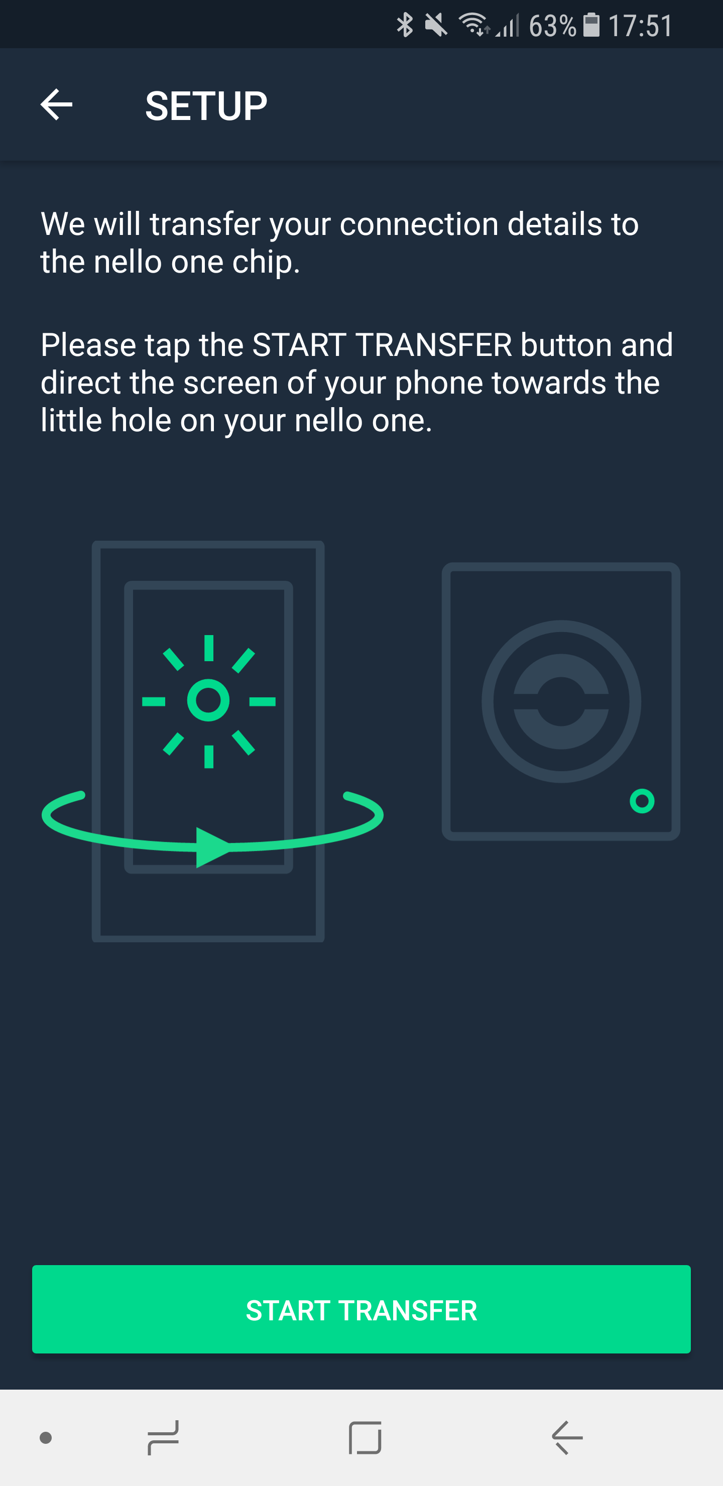 - Damit sich der nello richtig verbinden kann, müsst ihr euer Smartphone an den Lichtsensor des nello halten. Er beginnt zu blinken und auf diese Art einen Code zu übertragen.