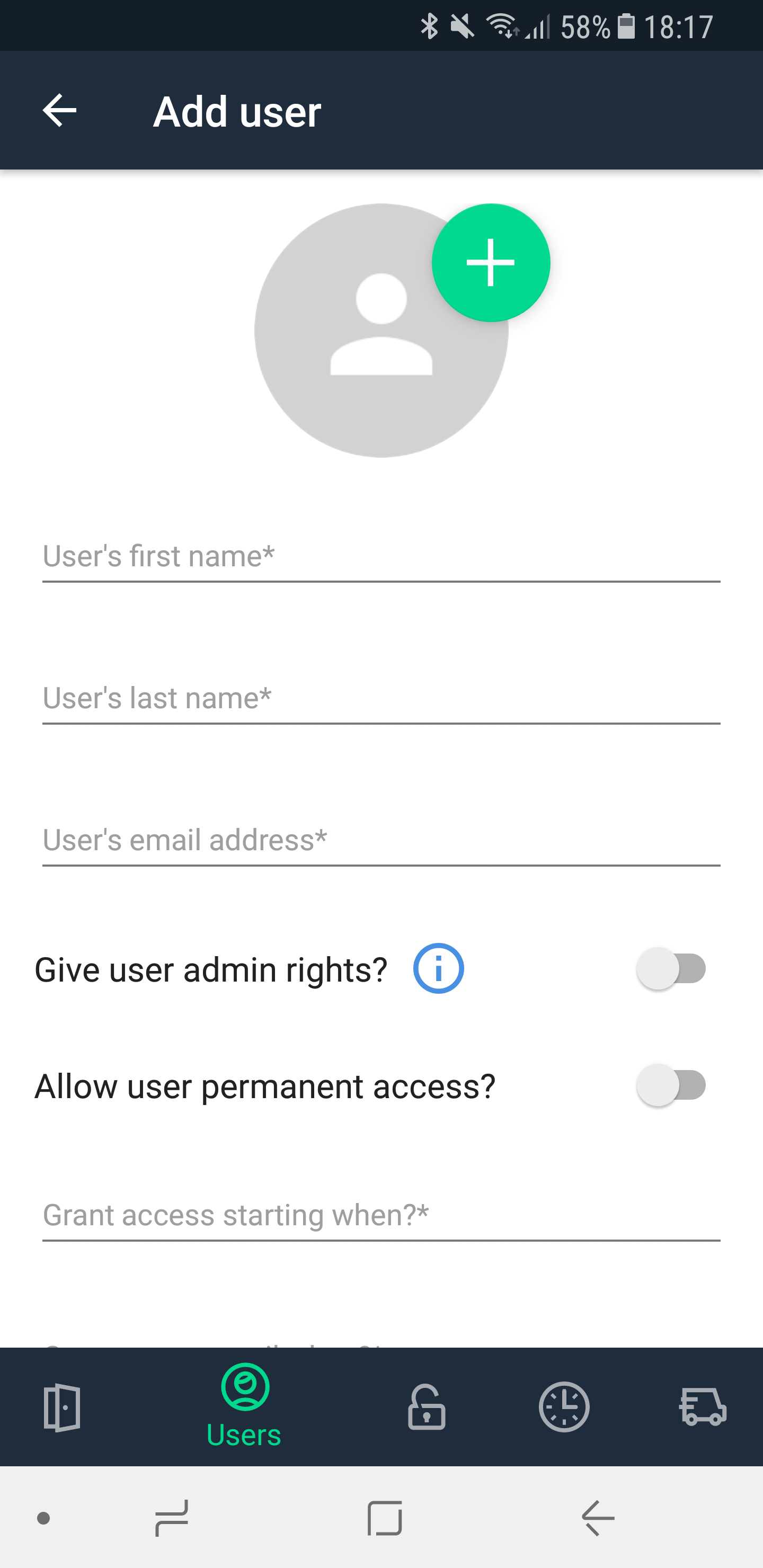 - Wählt das „+“ aus und fügt einen neuen Benutzer hinzu.
