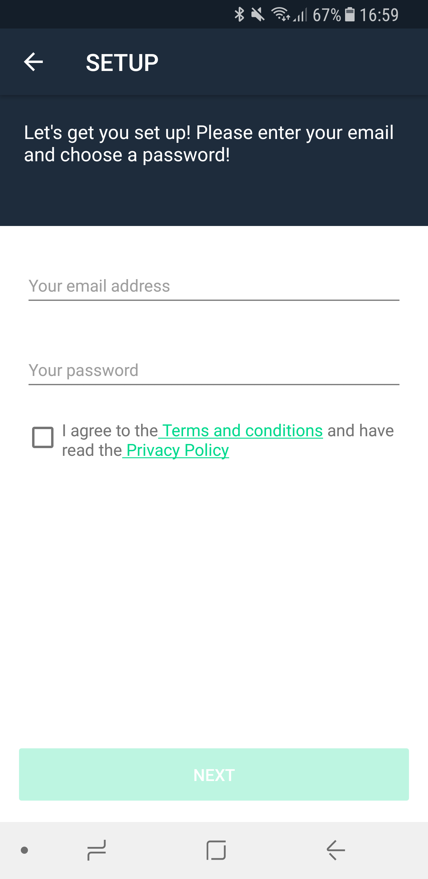 - Gebt eure Email Adresse und ein Passwort ein. Bestätigt zusätzlich die Bestimmungen.