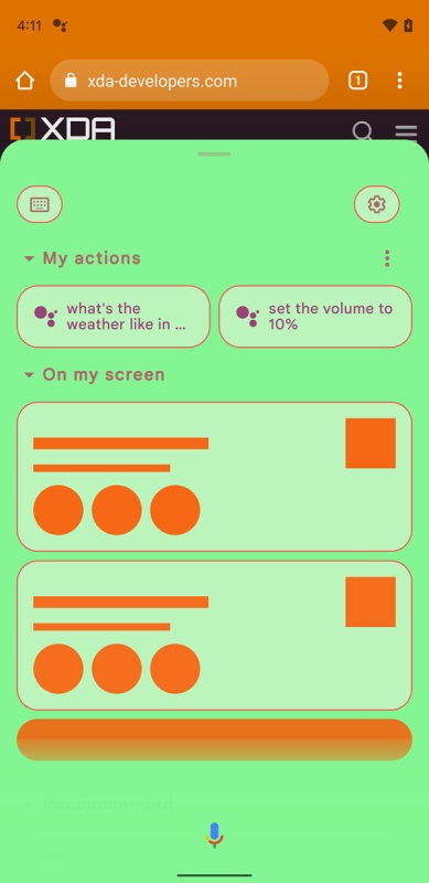 Die Schnittstelle ist wohl noch in Arbeit, aber von dem, was wir bereits sehen können, werden die Ergebnisse zusammenklappbar sein. Es wird direkt unter dem Meine Aktionen-Panel liegen, mit dem du einige deiner am häufigsten verwendeten Assistant-Befehle mit einem einzigen Tippen ausführen kannst. Noch ist die Funktionalität nicht gegeben, aber man gehe davon aus, dass die zukünftige Integration proaktiv Ergebnisse zeigen wird – also gänzlich ohne Tipp auf die Vorschläge.