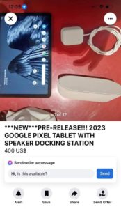 Auf der I/O Konferenz 2022 kündigte Google das Pixel Tablet an. Googles erstes Tablet unter eigener Marke seit Jahren und nun ist auf dem Facebook Marktplatz ein Leak des Pixel Tablets aufgetaucht.
