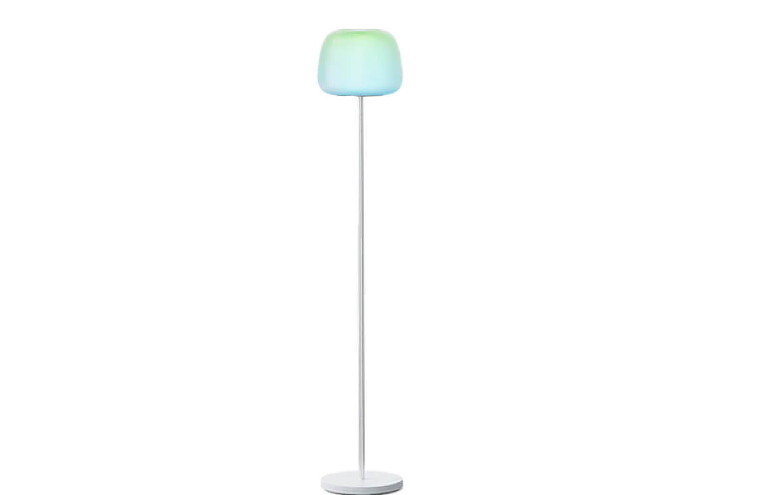 Stehleuchte mit wahlweise nach oben oder unten gerichtetem Licht und speziellen Nebel-Effekten. Bis zu 1.000 Lumen Weißlicht fürs Lesen.