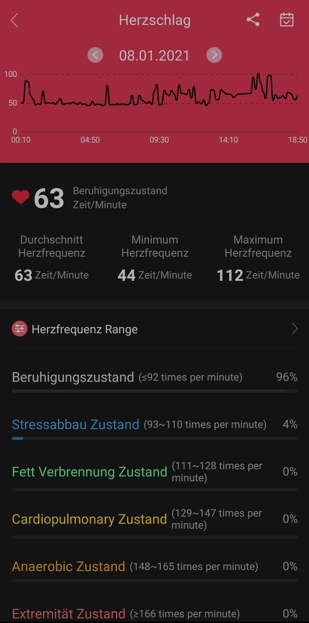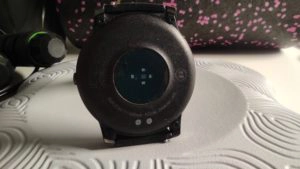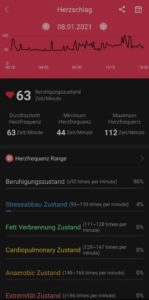 Die Pulsmessung funktioniert mit einem optischen Herzfrequenzsensor und einem Beschleunigungsmesser, die auf der Unterseite des Uhrengehäuses sitzen. Ich hatte während der Testphase die dauerhafte Messung an weshalb mir auf dem Display der aktuelle Puls sowie der höchste und niedrigste Wert angezeigt wird.