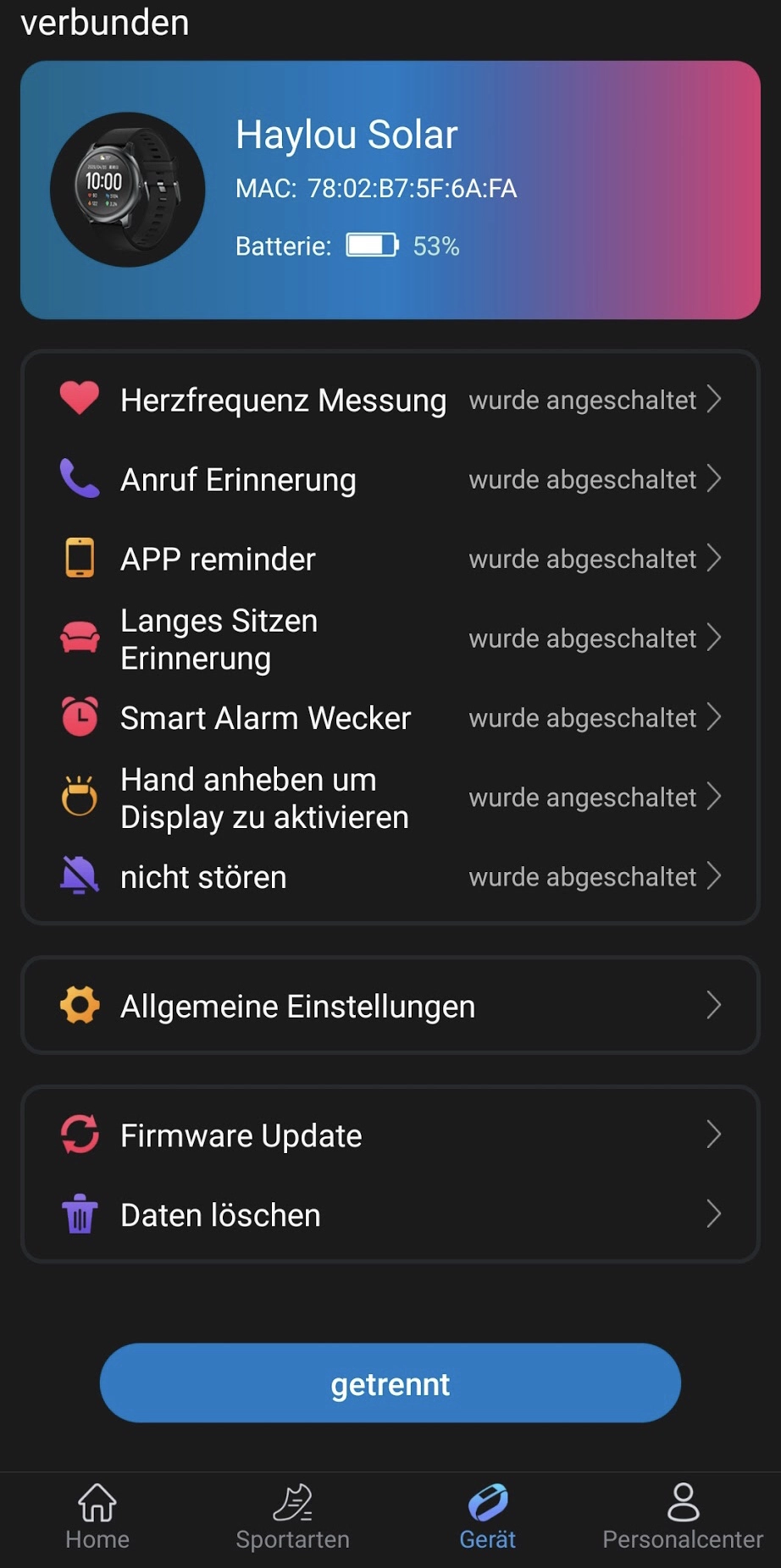 Die Haylou Solar bedient viele Funktionen der App. Manche sind aber in der App detaillierter dargestellt oder einstellbar.