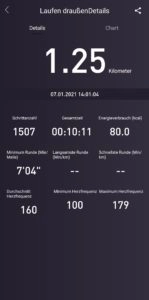 Leider wurde sowohl bei beiden Joggingtouren meine Zeiten und zurückgelegte Kilometer nicht richtig getrackt bzw. gespeichert. Von der jeweils 3,72 km zurückgelegten Strecke wurden nur 0,3 km (erster Lauf) bzw. 1,3 km (zweiter Lauf) gespeichert. Für mich war das sehr bedauerlich, insbesondere wenn ich mir vorstelle, dass ich die Uhr auch dafür nutzen möchte, meinen Trainingsverlauf zu dokumentieren. Die Ursache beim zweiten Lauf war, dass sich die Verbindung der Smartwatch mit dem Smartphone selbstständig abbrach wodurch die Haylou Solar LS05 keine Verbindung zu GPS hatte. Die Uhr hat vergeblich versucht die Verbindung wiederherzustellen. Als dies nicht funktionierte, wurde eine neue Aktivität gestartet und die Zeit und Kilometer starteten wieder bei 0. Woran die Aufzeichnung der ersten Joggingeinheit trotz mitlaufender Zeit scheiterte, habe ich nicht herausgefunden.