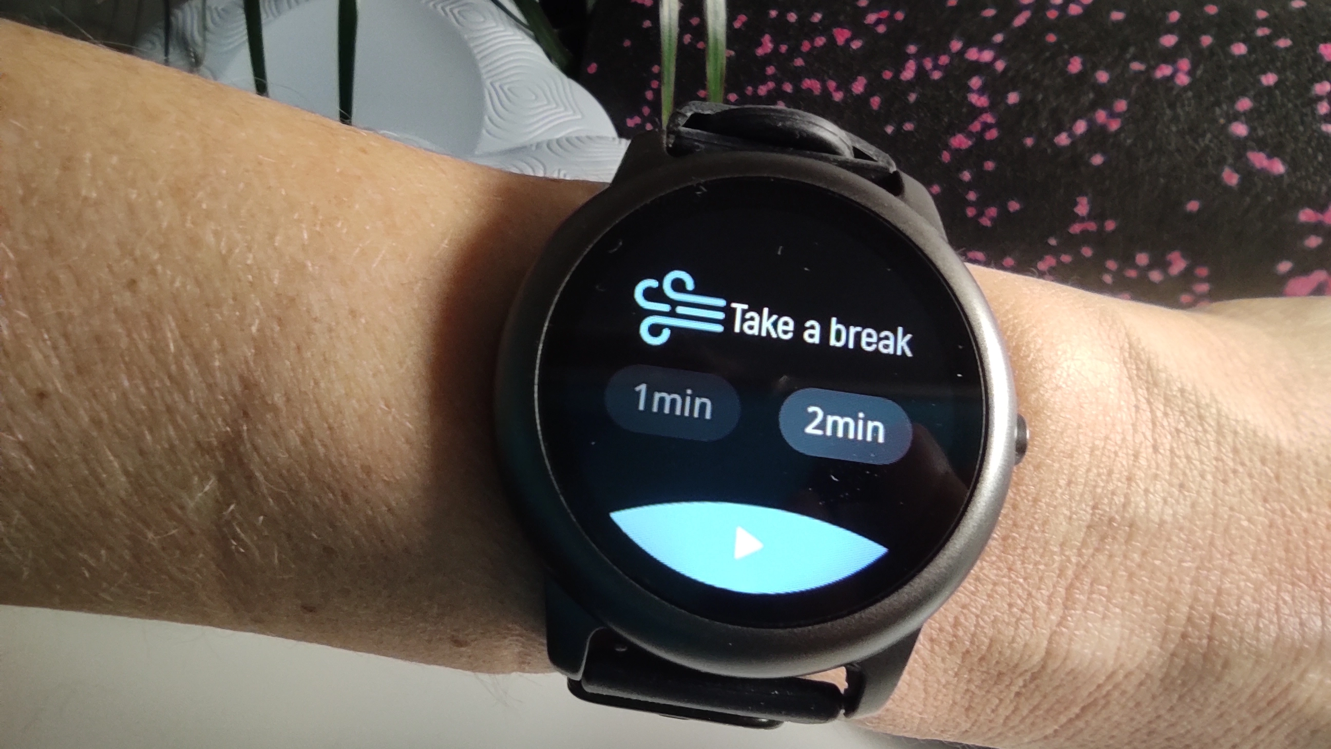 Die Haylou Solar LS05 bietet mit dieser Funktion die Möglichkeit eine kleine Entspannungsübung in den Alltag einzubauen. Gewählt werden kann eine Dauer von 1 oder 2 Minuten. Während der Übung zeigt die Smartwatch animiert die Ein- und Ausatemzeit an.